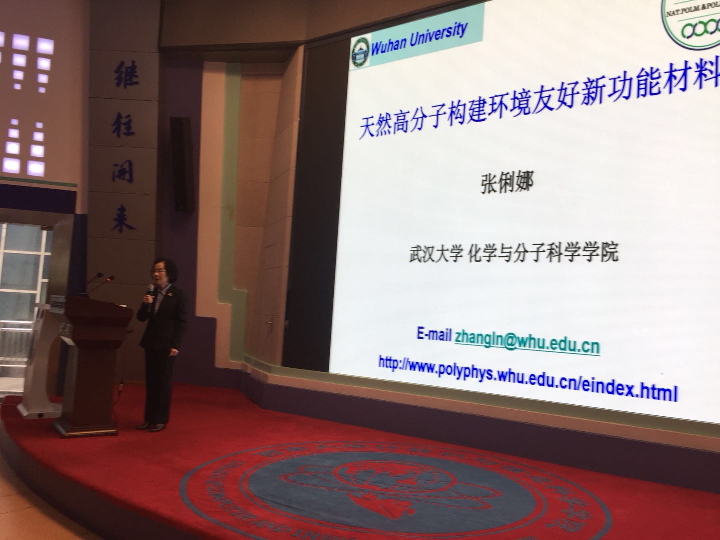 4月28日下午,武汉大学化学与分子科学学院张俐娜院士受学校科协、化学化工学院、软物质材料与功能制造重庆市重点实验室黄进教授的邀请,在计算机科学学院学术报告厅作“生物质大分子构建新功能材料”的学术报告。来自化学化工学院、材料与能源学部、纺织服装学院、药学院等多个学院200余名师生参加会议,报告会由化学化工学院李念兵院长主持。