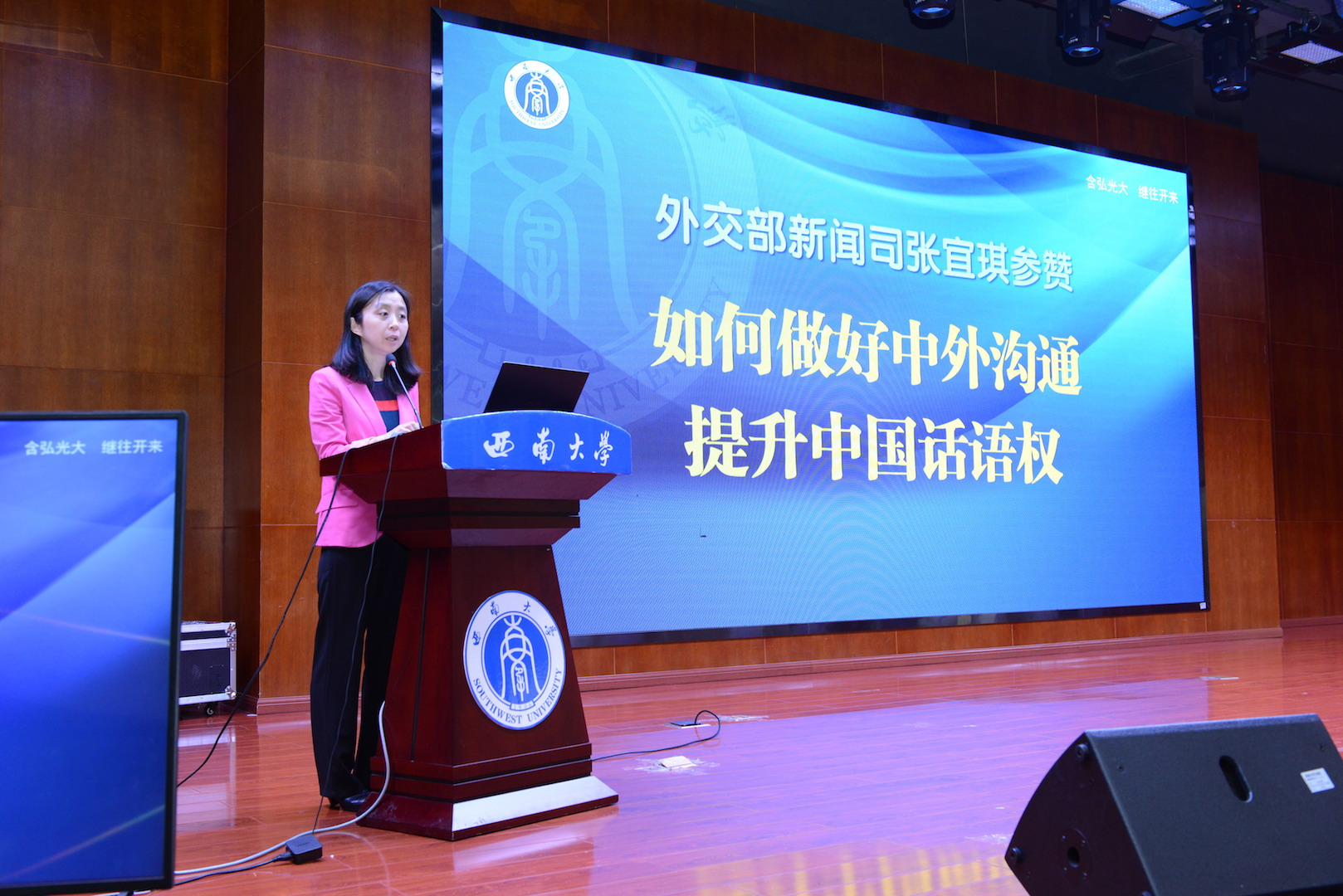 5月30日,2019年首场“外交外事知识进高校”活动重庆之行走进西南大学。外交部外事管理司副司长唐松根、领事司副司长陈雄风、新闻司参赞张宜琪等三位外交官和近500名师生面对面交流。重庆外办副主任唐文主持活动,学校校长张卫国、副校长王进军出席活动。