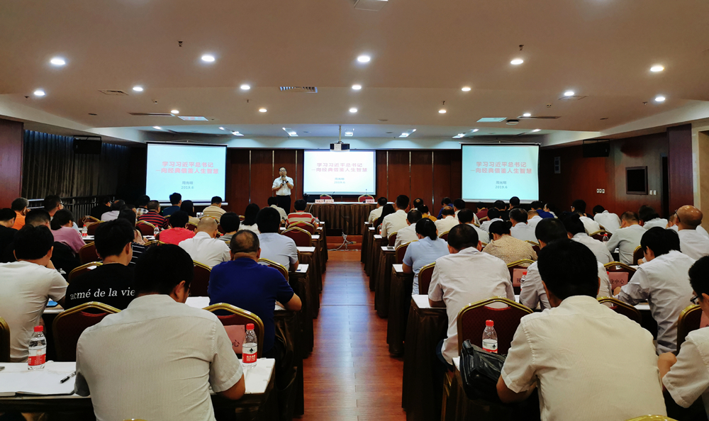 6月14日,在丹桂楼3楼10会议室,校长助理周光明以“学习习近平总书记——向经典借鉴人生智慧”为主题,为基本建设管理处、后勤集团的全体党员及中层干部作了学习习近平总书记系列重要讲话精神和习近平新时代中国特色社会主义思想系列讲座的第二讲。