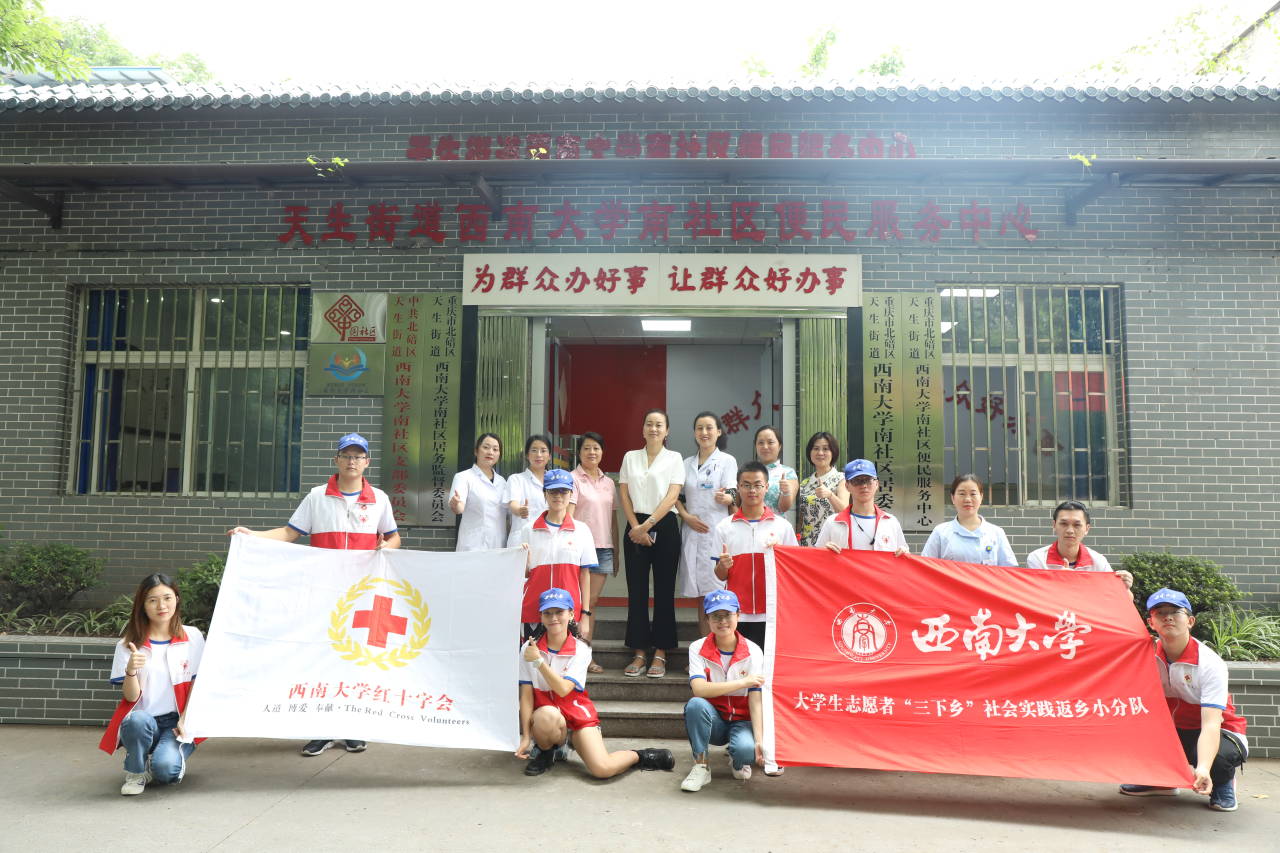 为进一步发挥青春力量、提高普通居民的健康意识、助力医疗卫生事业的全面发展,西南大学经济管理学院与西南大学红十字会联合组建了“北碚健康扶贫”服务队,在重庆多地开展了为时6天的健康公益活动。