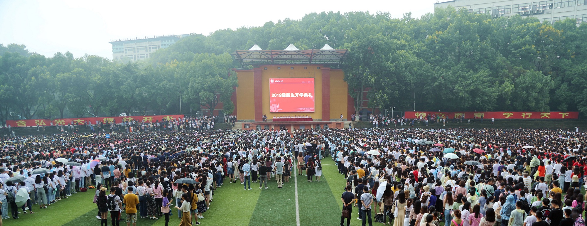 9 月8日清晨,绿茵如盖的第一运动场迎来2019级新生开学典礼,万余名学子排着整齐的队列参加庄严的入学仪式,正式开启人生新的旅程。