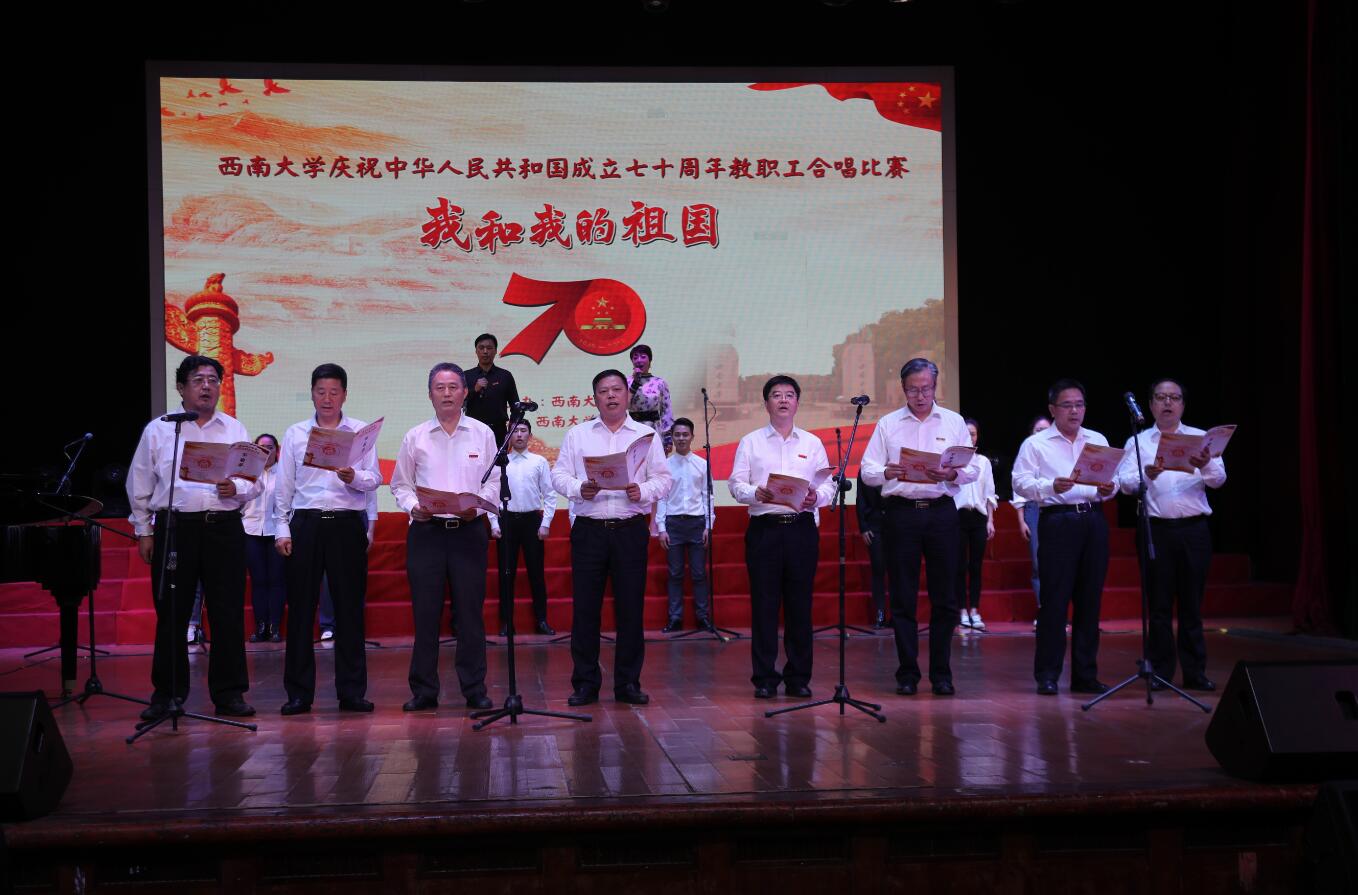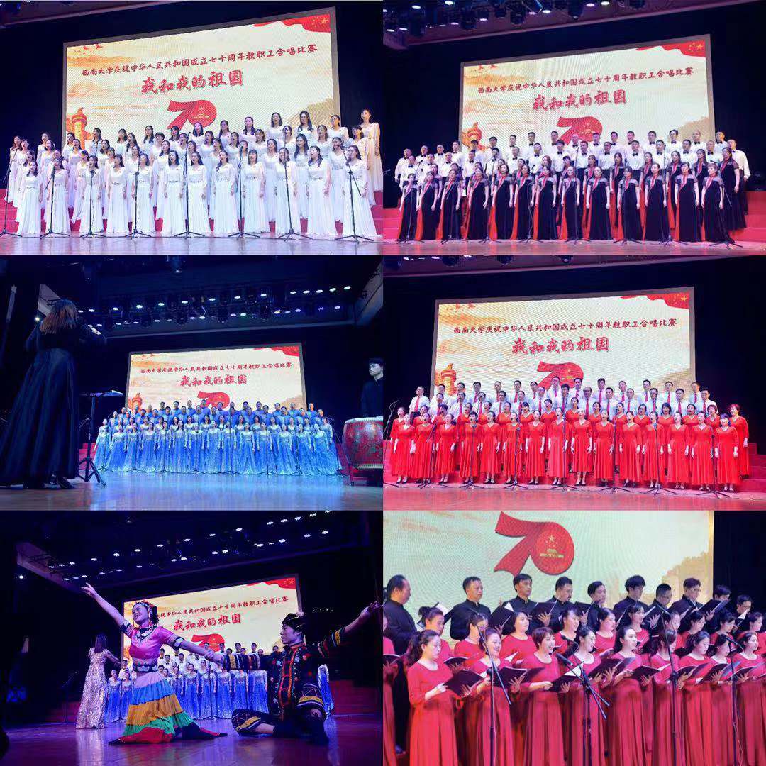“我和我的祖国”西南大学庆祝中华人民共和国成立七十周年教职工合唱比赛是学校庆祝新中国成立70周年系列活动之一,历时一个多月,全校一千多名教职员工组成37支队伍,为祖国献上最真挚和最热烈的祝福。各部门工会的节目主题突出、形式多样、精彩纷呈,得到普遍赞誉,激发了广大教职工强烈的爱国热情。