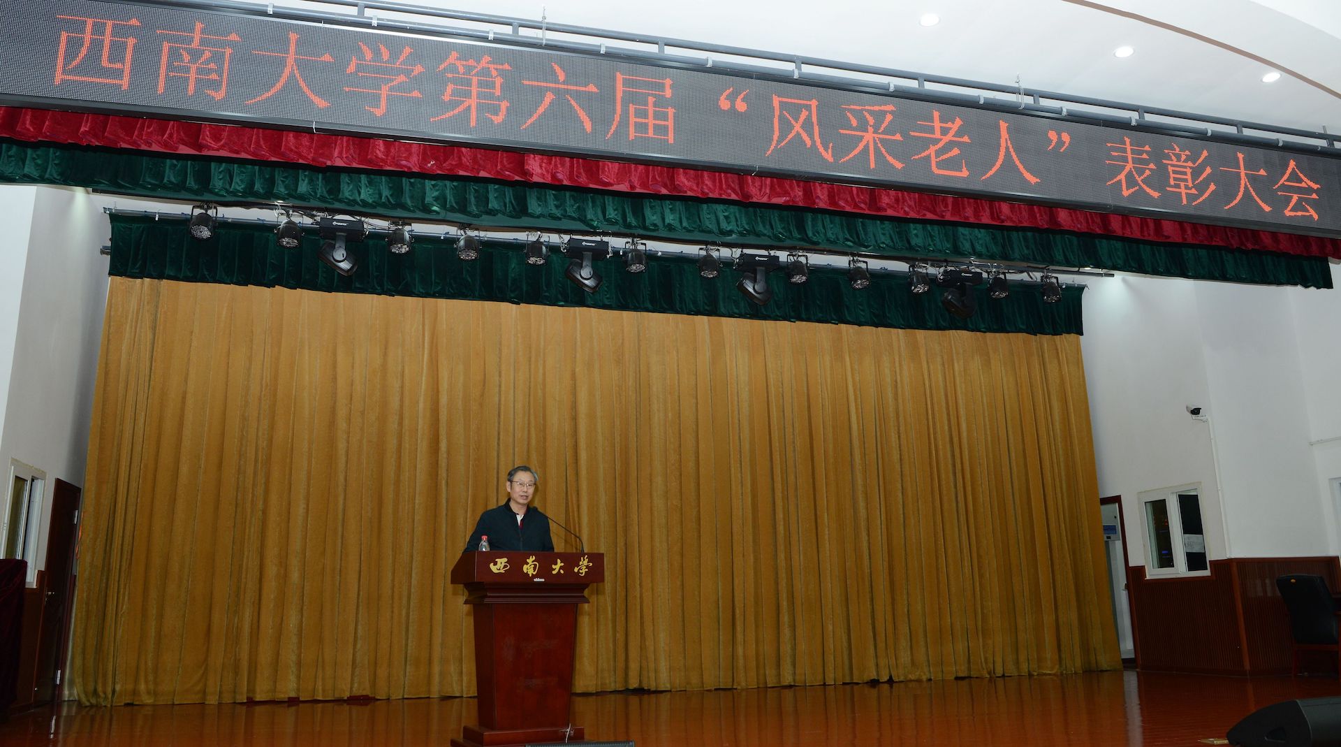 会上宣布《西南大学关于表彰第六届“风采老人”的决定》,参会领导为受表彰的“风采老人”颁发荣誉证书。“风采老人”代表王有超同志、陈明树同志交流发言,讲述了他们永葆本色、心系教育的切身感受,以及对学校的感激之情,并表示将继续关心学校建设发展。