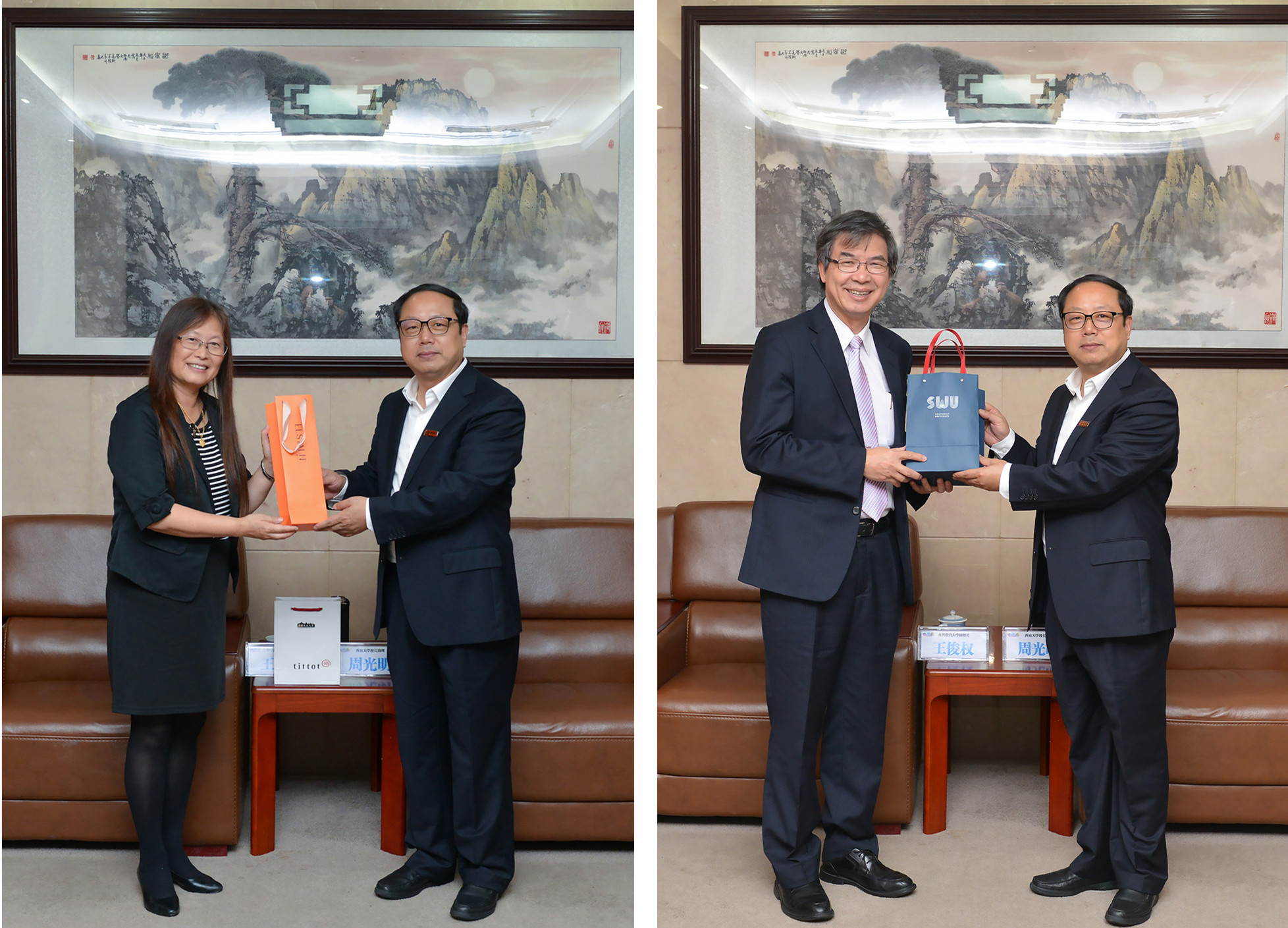 10月14日,台湾中国文化大学副校长王淑音,静宜大学副校长兼国际长王俊权及大陆事务组吕富美组长一行分别来校访问,校长助理周光明先后会见了客人。
