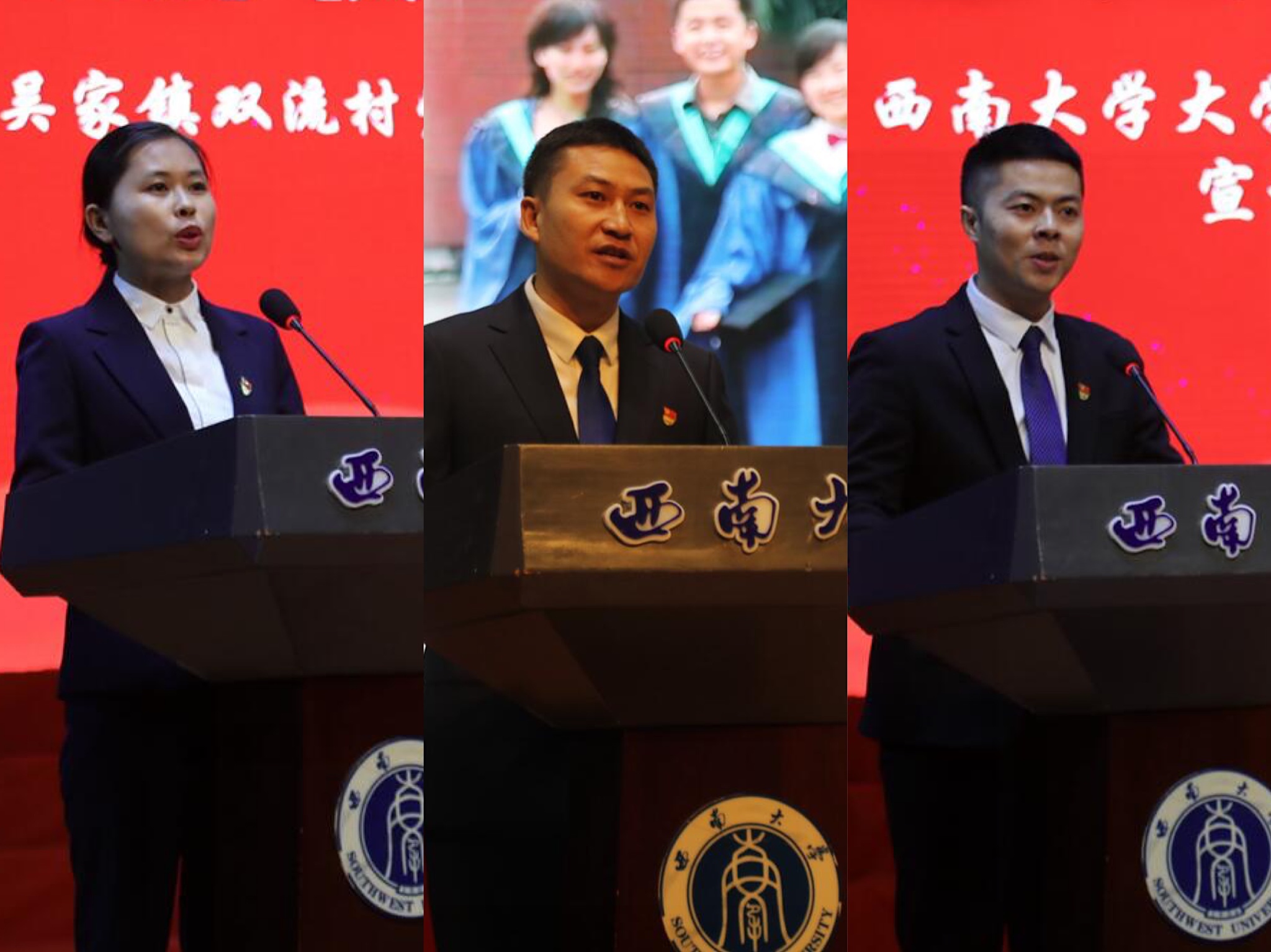 江北区91岁退休干部李玉珍,有着舍小家为大家的觉悟和坚持;涪陵区复员老战士、中共党员易禄亨表示还有很多事情没有做完,要一直保持战斗状态;中国工程院院士向仲怀表达了“科技报国,责无旁贷”的决心;双流村党总支书记杨媚为带领全村人民致富,尝尽苦涩也毅然前行;中共党员方文利用科学知识打好脱贫攻坚战,让科研成果在田间地头开花结果;西南大学大学生中国特色社会主义理论体系宣讲团成员代表晏勇,带着信仰去宣讲,践行党的理论,让党的智慧和真理闪耀灼灼光芒。