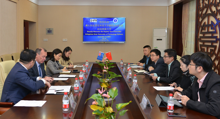 陈时见副校长对万胤忠副校长来访表示热烈欢迎,对其任西澳大学副校长期间,推动共建西南大学西塔学院做出的巨大贡献表示感谢。陈时见副校长表示,当前我国对人工智能领域研究与应用高度重视,悉尼科技大学在人工智能等专业领域名列世界前茅,希望两校从短期师生交流项目做起,广泛建立学术联系,加强科研成果转化,尽早促成两校实质合作。