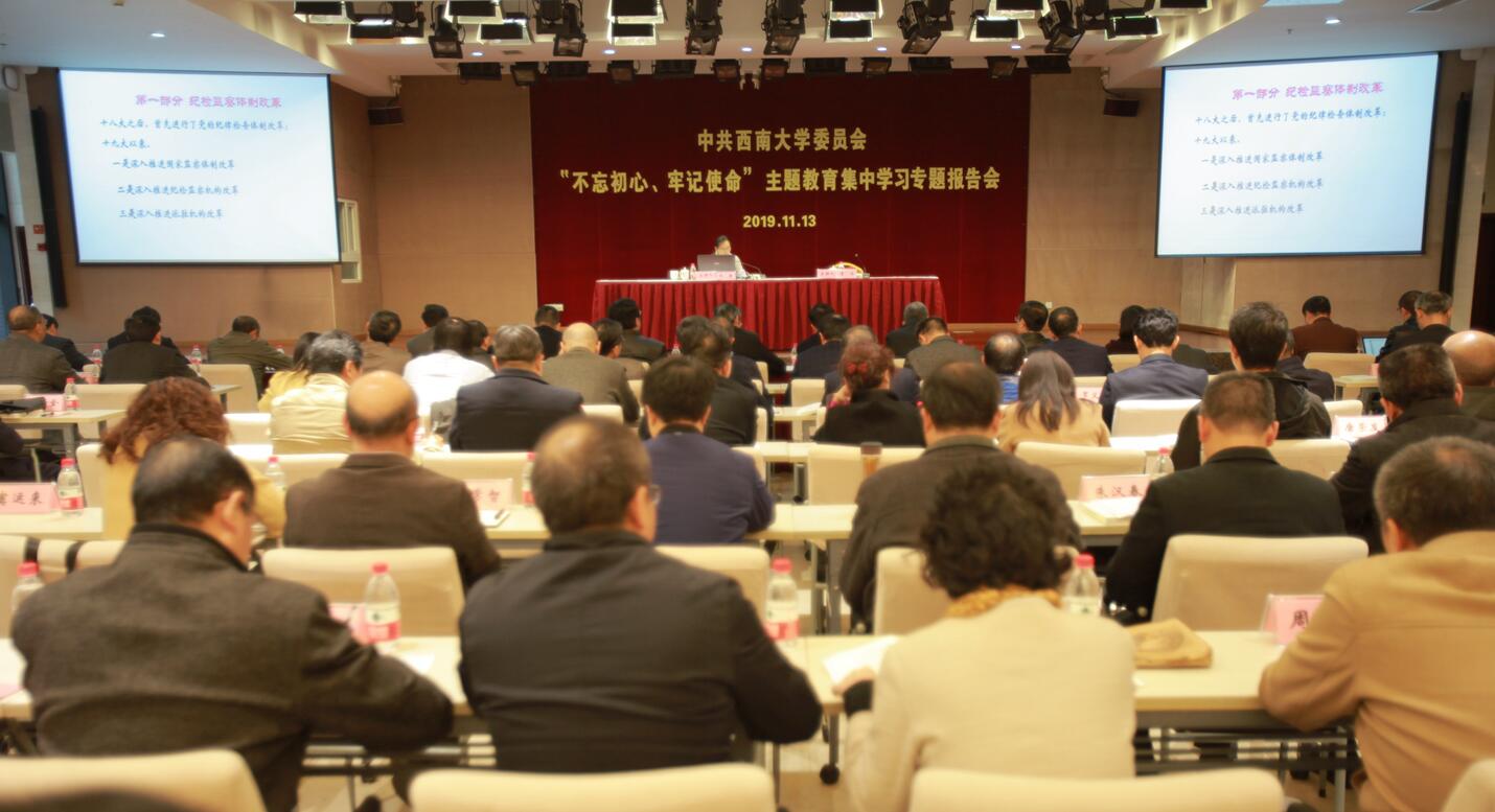 为深入推进“不忘初心、牢记使命”主题教育,加强学校党风廉政教育,11月13日下午,学校在国际学院报告厅举行专题报告会,学习领会中央深化纪检监察体制改革精神,深入学习新颁布的《中国共产党纪律处分条例》(简称“条例”)和《中华人民共和国监察法》(简称“监察法”),开展警示教育。学校党委书记李旭锋等在校校领导,全体处级干部,二级纪委书记、党总支纪检委员参加会议。重庆市纪委监委第三监督检查室汪葵副主任作专题报告,党委副书记、纪委书记李华主持会议。