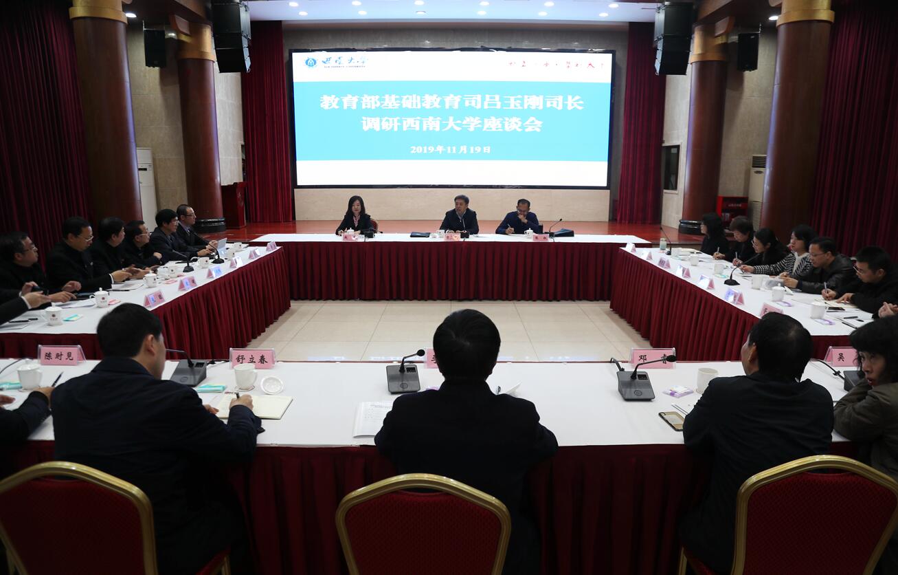 11月19日下午,教育部基础教育司司长吕玉刚一行来校调研指导工作,并与重庆市教委主任舒立春、学校党委书记李旭锋等座谈交流。学校副校长陈时见等相关同志陪同调研。