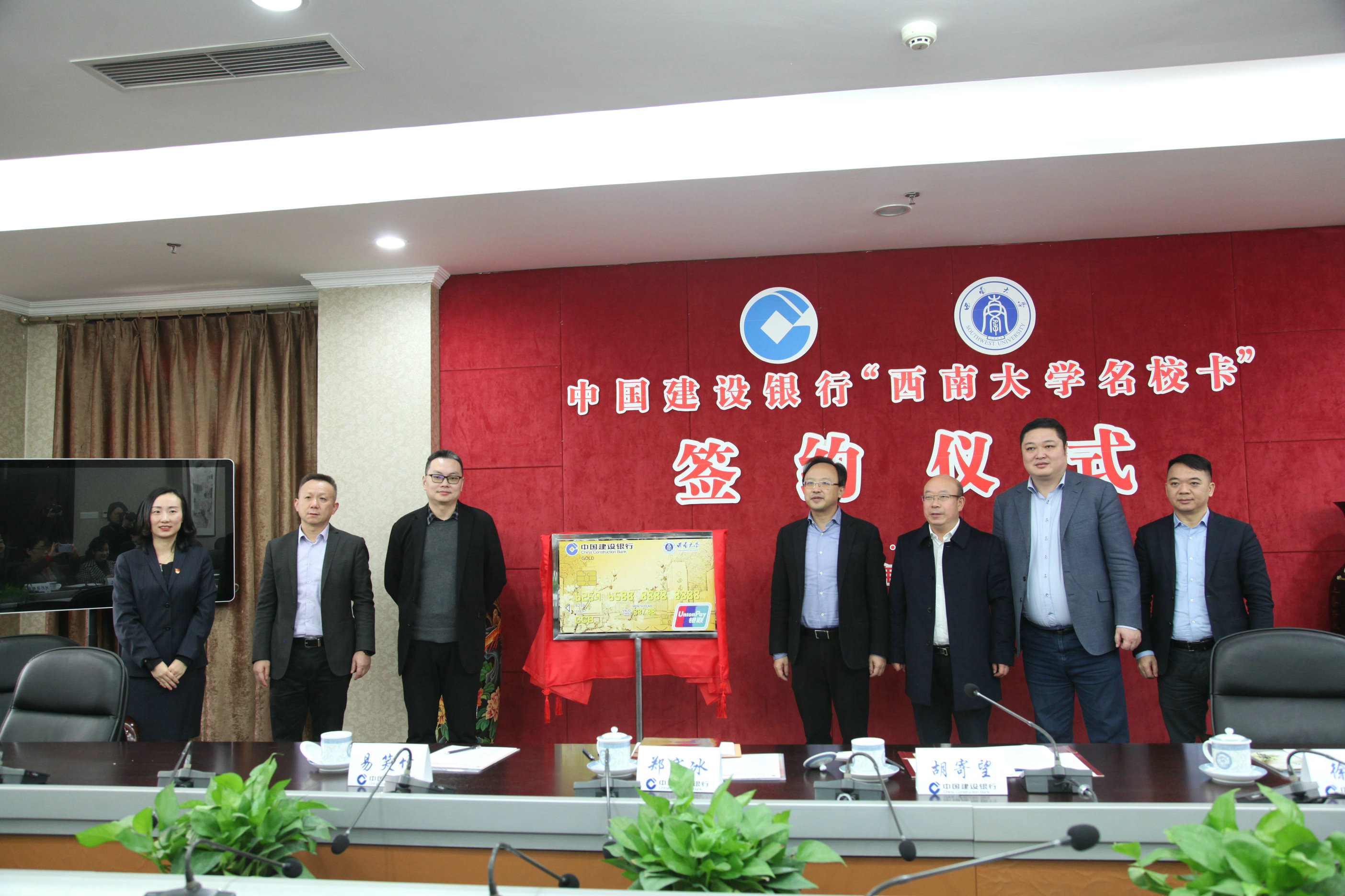 建行重庆分行信用卡部、北碚支行相关负责人及西南大学校办、人事处、财务处、学生工作部(处)、团委、对外联络部相关负责人参加签约仪式。