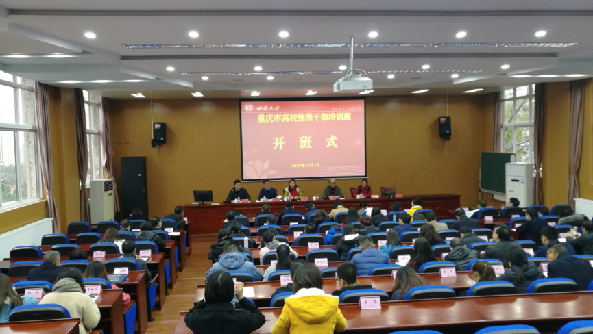 12月2日,由中共重庆市委教育工委主办、西南大学承办的重庆市高校统战干部培训班在校开班。市委教育工委统战处处长范晓霞,市委统战部无党派人士和党外知识分子工作处副处长陈研科,市委统战部教育培训处调研员陈恒永,学校培训学院院长罗朝明出席开班式。