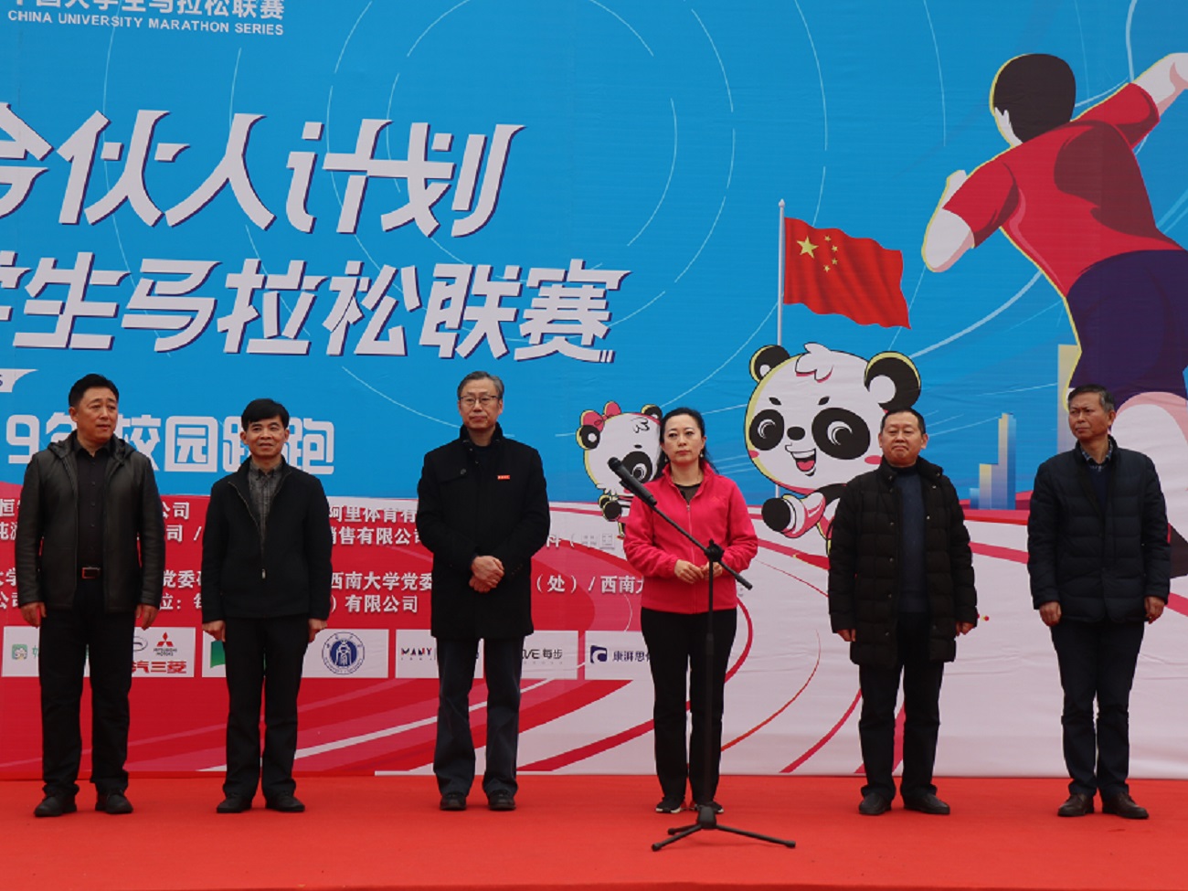 为积极响应习近平总书记在党的十九大上提出的“全民健身和竞技体育全面发展”“广泛开展全民健身活动,加快推进体育强国建设”号召,倡导师生走下网络、走出宿舍、走进操场,促进大家积极加强体育锻炼,强健体魄,12月13日下午,2019年中国大学生校园马拉松联赛(西南大学站)暨学校2019年校园路跑比赛火热举行。学校党委副书记安春元,恒安集团副总裁刘莹、恒安集团西南运营中心总经理王建福,校体委、教务处、体育学院等相关领导出席起跑仪式。
