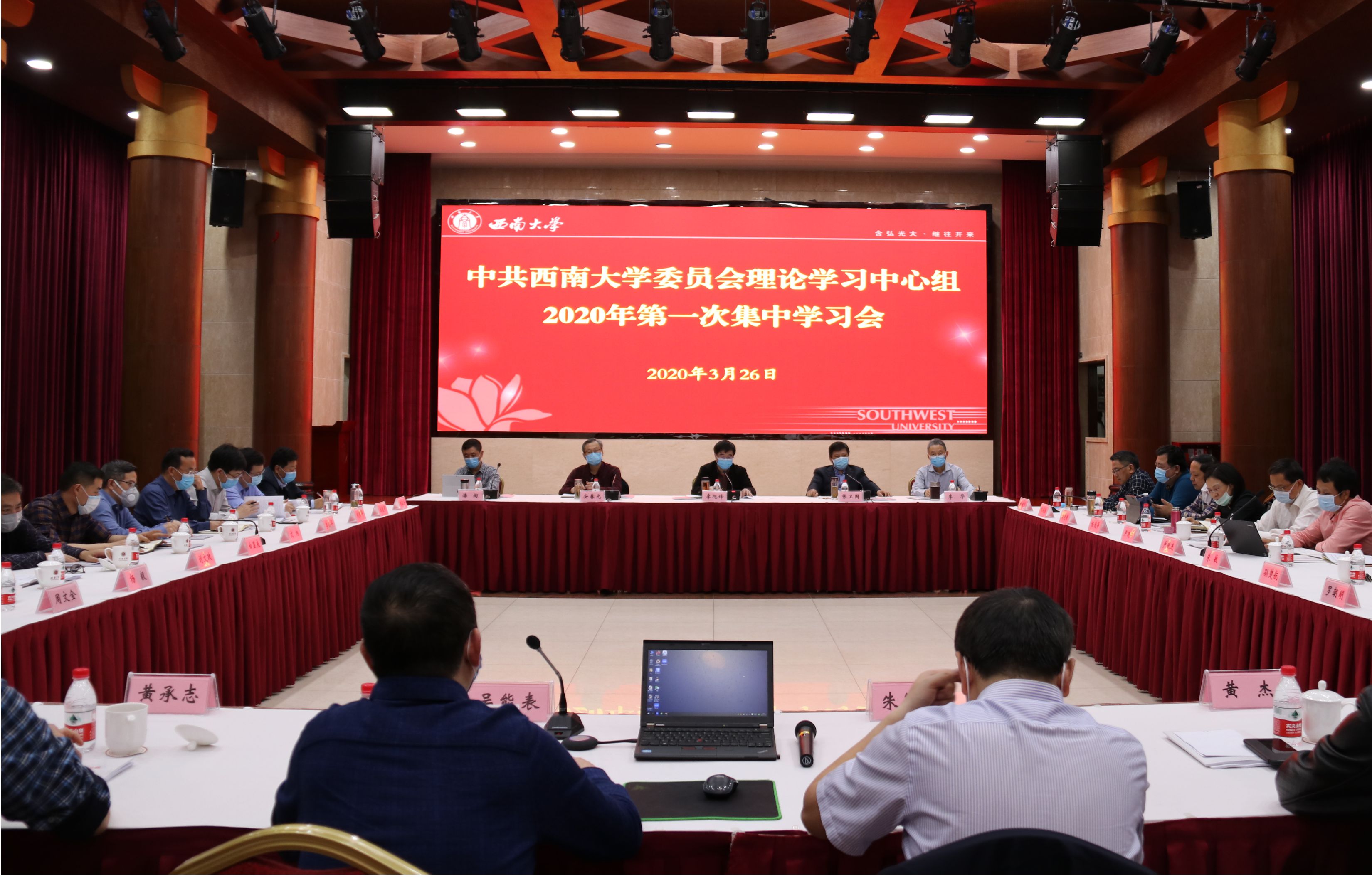 为深入学习贯彻习近平总书记关于疫情防控工作的系列重要讲话和指示批示精神,统筹推进疫情防控和学校事业发展,学校于3月26日下午在东方红会议厅召开了2020年度第一次党委理论中心组集中学习会,专题学习研讨疫情防控背景下的高等教育治理。校领导、党委委员参会。党委书记李旭锋主持会议。