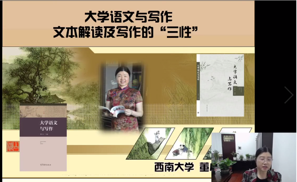 4月17日,西南大学114周年校庆前夕,新闻传媒学院董小玉教授应高等教育出版社邀请,做客“名师在线谈教学”栏目,面向社会开展了一场题为“大学语文与写作”的讲座,近万人在线观看直播。