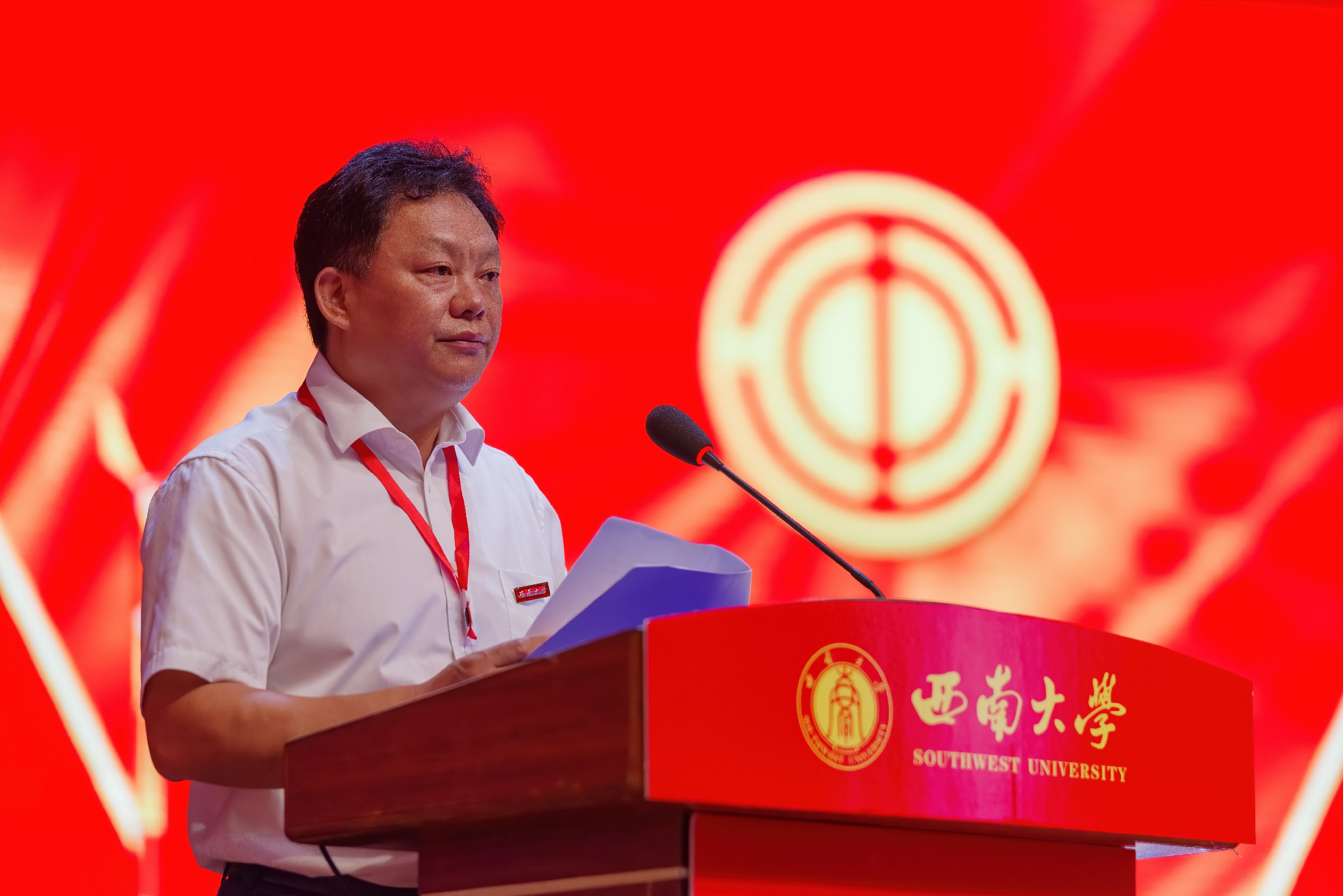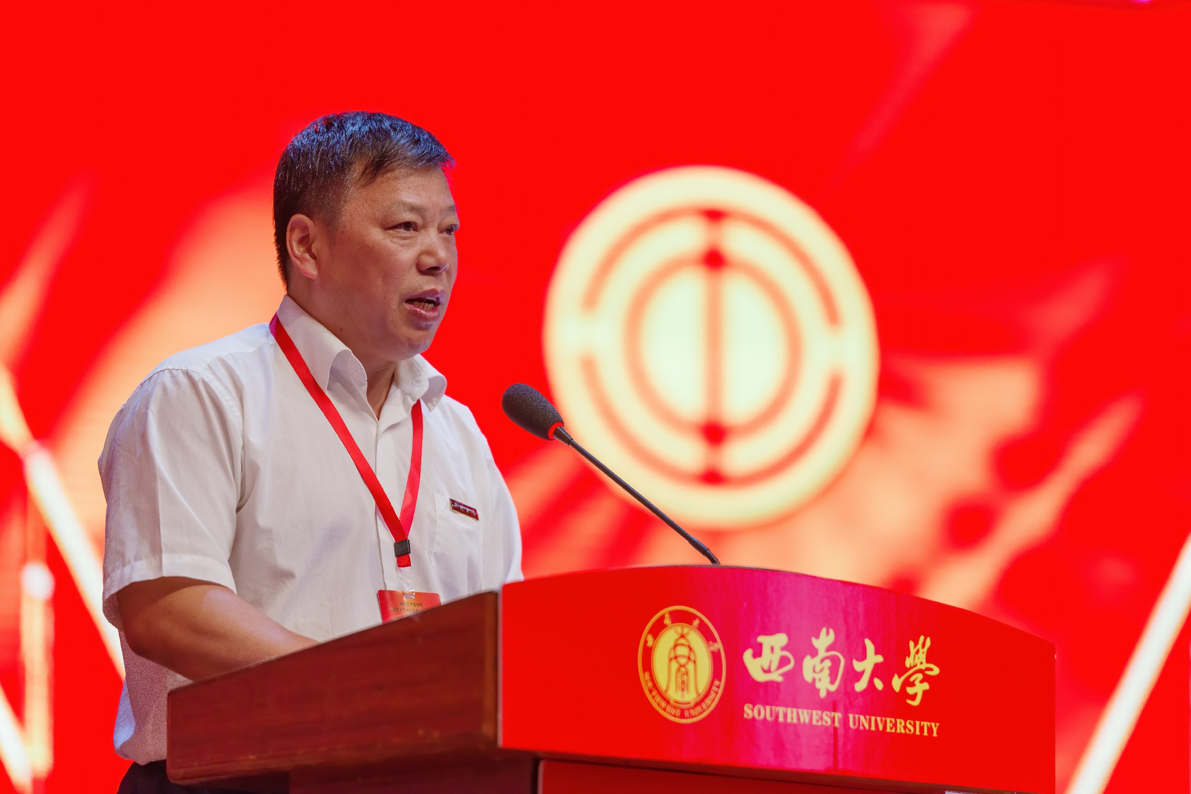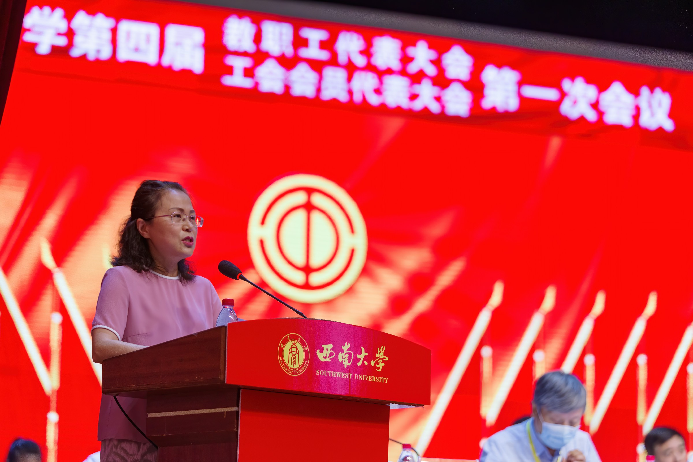 重庆市总工会一级巡视员、重庆市教科文卫体工会主席杨军波致辞,预祝大会圆满召开。杨军波充分肯定了西南大学第三届工会在学校党委的正确领导和行政的重视支持下,紧紧围绕学校中心工作,自觉服务学校发展大局,在引领教职工思想、助力教职工建功立业、推进健全规范化民主管理、促进校园文化建设、开展教职工文化体育活动、关心关爱教职工等方面卓有成效的工作。并对学校工会的开展提出三点建议:一是履行政治责任,团结带领职工群众坚定不移听党话、跟党走。二是紧扣时代主题,组织动员广大教育工作者立足本职建功立业。三是真诚服务职工,不断提升职工群众的获得感、幸福感、安全感。