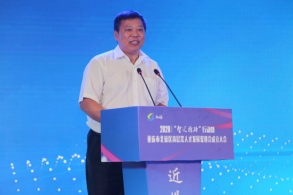 8月31日,2020年“智汇北碚”行动暨北碚区高层次人才发展促进会成立大会召开。大会由北碚区委、区政府、西南大学和中科院绿色智能技术研究院主办,北碚区高层次人才发展促进会协办。中共重庆市委组织部部务委员肖锋,中共重庆市北碚区委书记、区委人才工作领导小组组长周旭,重庆市科协副主席龙晖以及国内学术界、产业界人士代表出席会议,国家、市级、区级人才计划人选在内的近200名高层次人才参加。学校中国工程院院士向仲怀、校长张卫国、第二届“缙云英才”称号获得者、北碚区高层次人才发展促进会成员、党政办公室、党委组织部(人才工作办公室)等相关部门负责人参加会议。