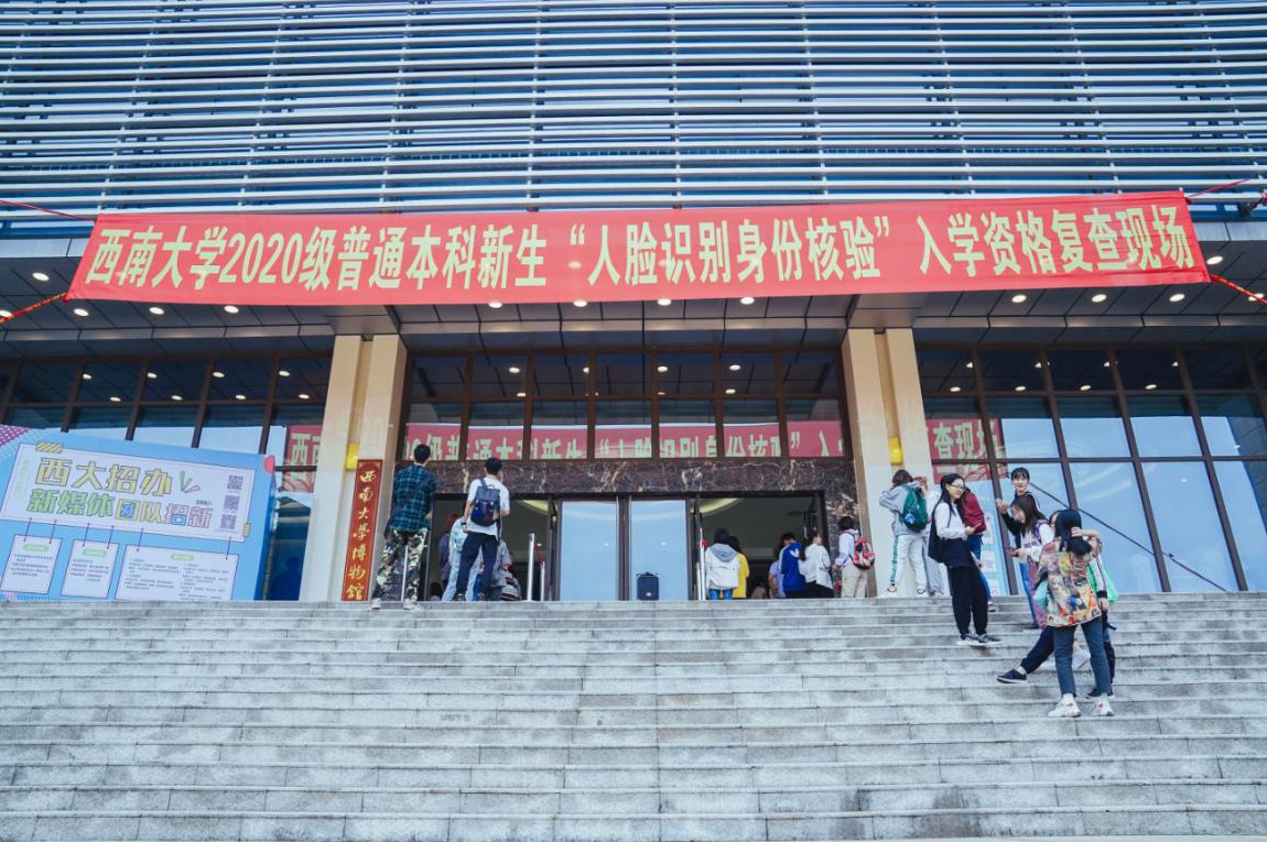 为做好本次新生身份核验工作,学校定制开发了西南大学2020级新生人脸识别身份核验系统,安装18组高识别率高防伪三维人脸识别核验设备,采用多视角人脸识别及高精度三维人脸识别技术,与新生电子档案逐一比对核查,实现入学新生本人、身份证芯片内置照片、高考报名照片三比对。