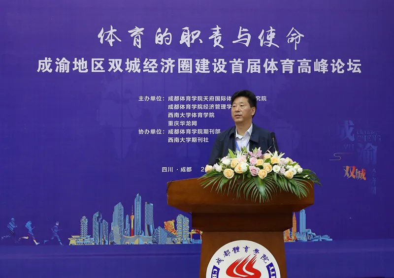 为推动川渝体育融合,助力成渝地区双城经济圈建设,9月30日,由成都体育学院天府国际体育赛事研究院、成都体育学院经济管理学院、西南大学体育学院、重庆华龙网主办,西南大学期刊社、成都体育学院期刊部协办的“体育的职责与使命——成渝地区双城经济圈建设首届体育高峰论坛”在成都体育学院举行。本次论坛以“成渝双城经济圈建设与‘城市体育’发展”为主题,共襄成渝双城经济圈建设。