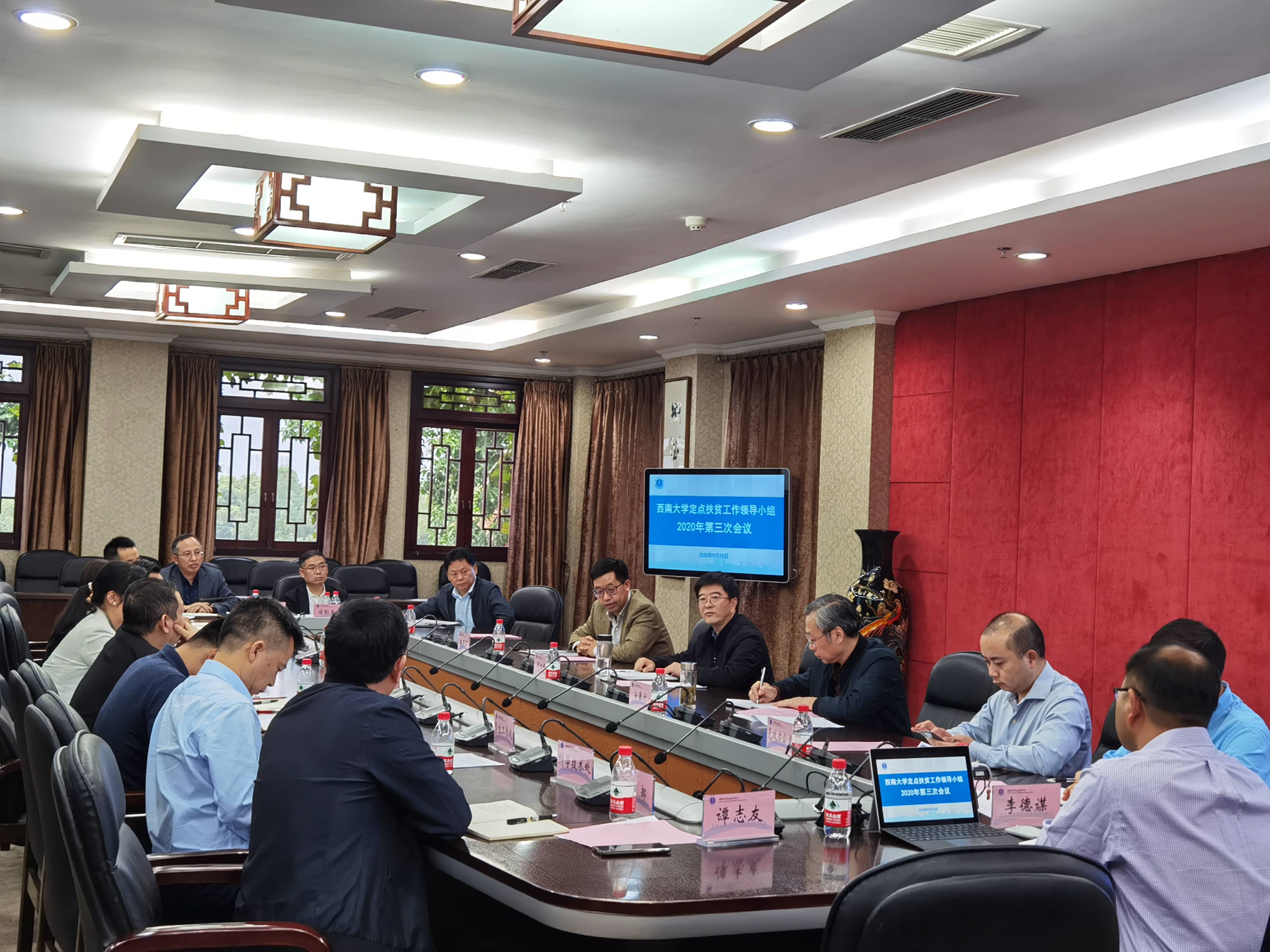 会上,学校派驻昌宁县挂职副县长谭志友和昌宁县田园镇新城社区挂职第一书记李德谋分别汇报挂职期间工作开展情况及下一步工作思路和建议。国内合作处负责人汇报了学校定点扶贫工作进展情况。对照学校上报教育部《中央单位定点扶贫责任书》和《西南大学2020年定点扶贫昌宁县工作计划》的要求,学校已全面完成定点扶贫“6个200”任务,特色帮扶工作有序开展,取得良好成效,受到地方干部群众的充分肯定。与会人员针对下一步定点扶贫重点工作和国家扶贫日活动方案进行了充分讨论。