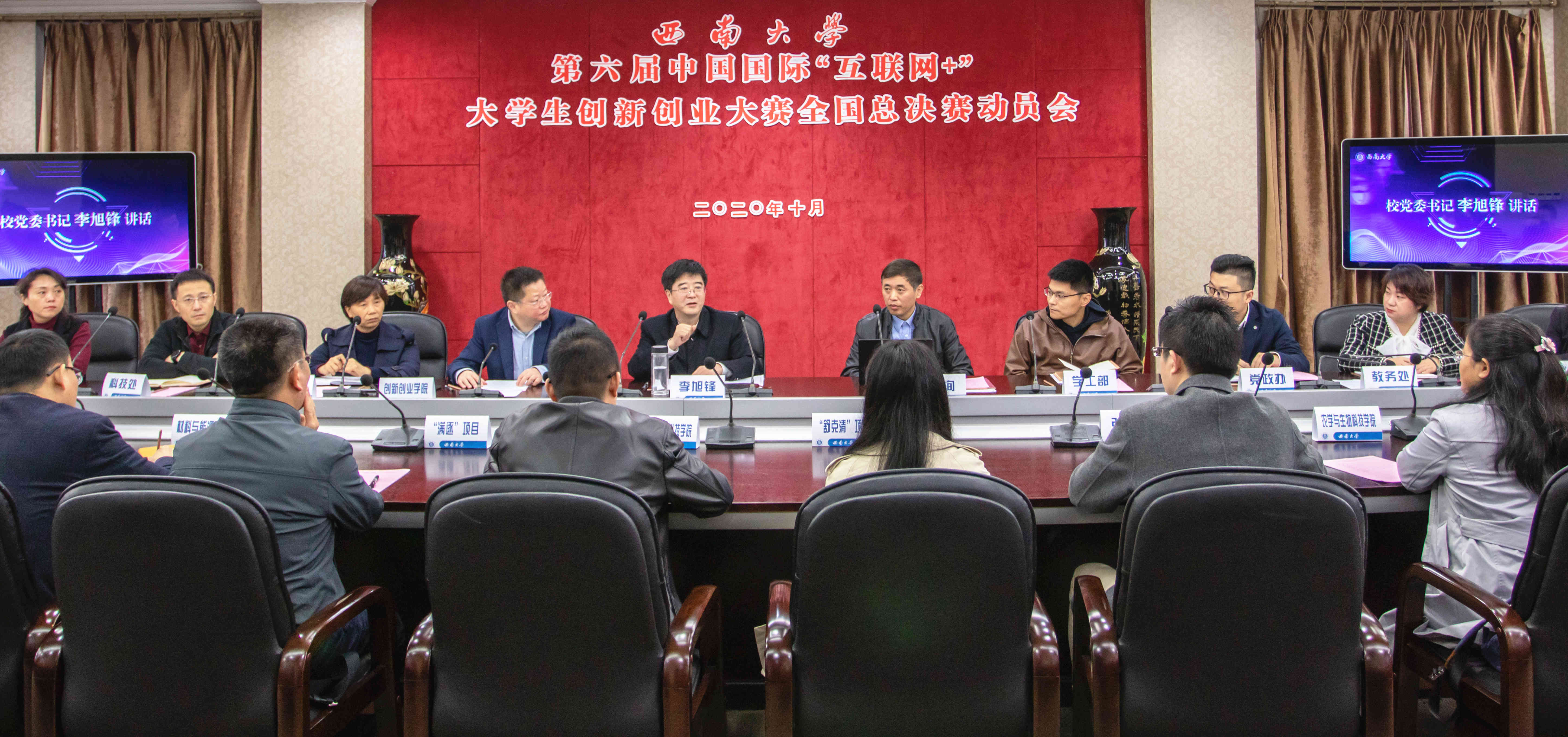 为进一步做好参加全国总决赛的备赛工作,10月30日,学校在行署楼三楼5会议室召开赛前动员会。学校党委书记李旭锋、党委副书记潘洵,党政办公室、教务处、研究生院、学生工作处、科学技术处、创新创业学院等部门负责人,晋级全国总决赛项目所在学院领导、项目指导教师及参赛学生代表参加会议。