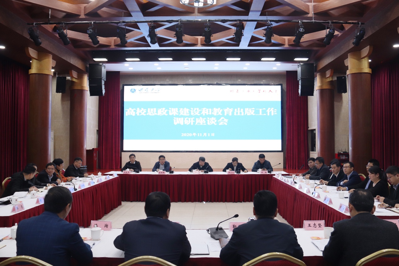 11月1日,教育部社会科学司司长、教育部习近平新时代中国特色社会主义思想研究中心副主任刘贵芹一行来校调研思政课建设和教育出版工作。重庆市委教育工委专职副书记覃正杰,学校校长张卫国,党委副书记潘洵,副校长靳玉乐,党委常委、党委宣传部部长、党委网络工作部部长李荣华以及学校相关单位负责人、思政课教师代表参加调研座谈会。会议由张卫国主持。