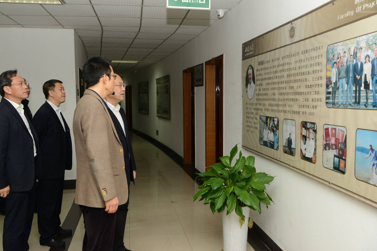 王正谱走进校史馆,了解西南大学发展沿革,对百余年来学校在人才培养、科学研究、社会服务、文化传承等方面的积淀和成绩给予充分肯定。随后,他来到家蚕基因组生物学国家重点实验室,了解实验室科研成果、人才队伍建设等情况,观看并体验实验室与四川多家龙头企业合作研发产品,认为其在推动“产学研”融合和引领现代蚕桑产业发展方面颇有特色。在认知与人格教育部重点实验室,王正谱观看了眼动、生物反馈、痛觉、行为观察等实验,对学校认知与人格心理学取得的研究成果表示赞赏。