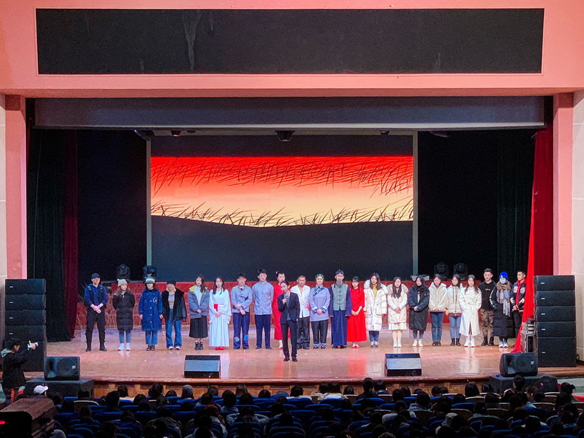 为丰富校园文化生活、传播话剧知识、拓宽学生的文化知识视野、推进大学生素质的全面发展与提高、提升校园文化内涵、促进学校文化艺术多样性发展、营造浓厚的校园文化氛围,纪念中国杰出的现代话剧剧作家、戏剧教育家曹禺先生诞辰110周年,1月3日,学校实验剧社经过两个多月的精心排演将曹禺先生经典作品《原野》搬上话剧舞台,在光大礼堂公演两场,吸引上千名观众到场观看。这部创作于1937年的经典名著,是曹禺先生唯一一部描写中国农村的作品,其风格显然不同于他的其他代表作,如《雷雨》《日出》《北京人》,《原野》以其曲折离奇的故事情节和丰满多面的人物性格而深受广大观众喜爱。这部作品和现实主义有区别,冤冤相报、看似简单的复仇故事,蕴涵着阔大渊深的人物情感并展现出复杂鲜明的人物性格:它不仅仅揭露了封建社会的黑暗,表现被压迫、被摧残的农民对美好生活的向往,还更深地发掘了人性的复杂多面性。