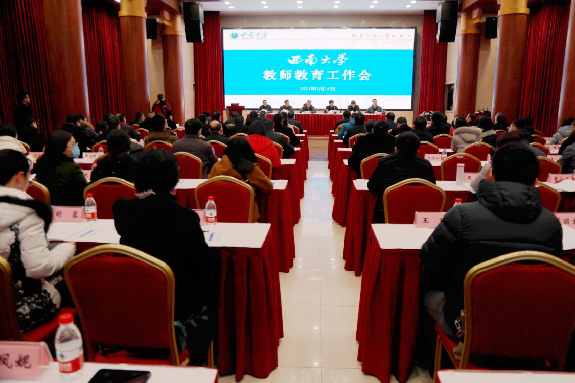 近日,学校教师教育工作会在东方红会议厅举行,会议主题为深化教育评价改革、推动教师教育高质量发展。教育部教师工作司司长任友群、学校党委书记李旭锋、校长张卫国、党委副书记潘洵、副校长陈时见、王进军等领导出席本次会议,教师教育工作领导小组成员单位、相关职能部门及15个师范生培养学院主要负责人、教师教育学科教师代表等90余人参会。陈时见主持会议。