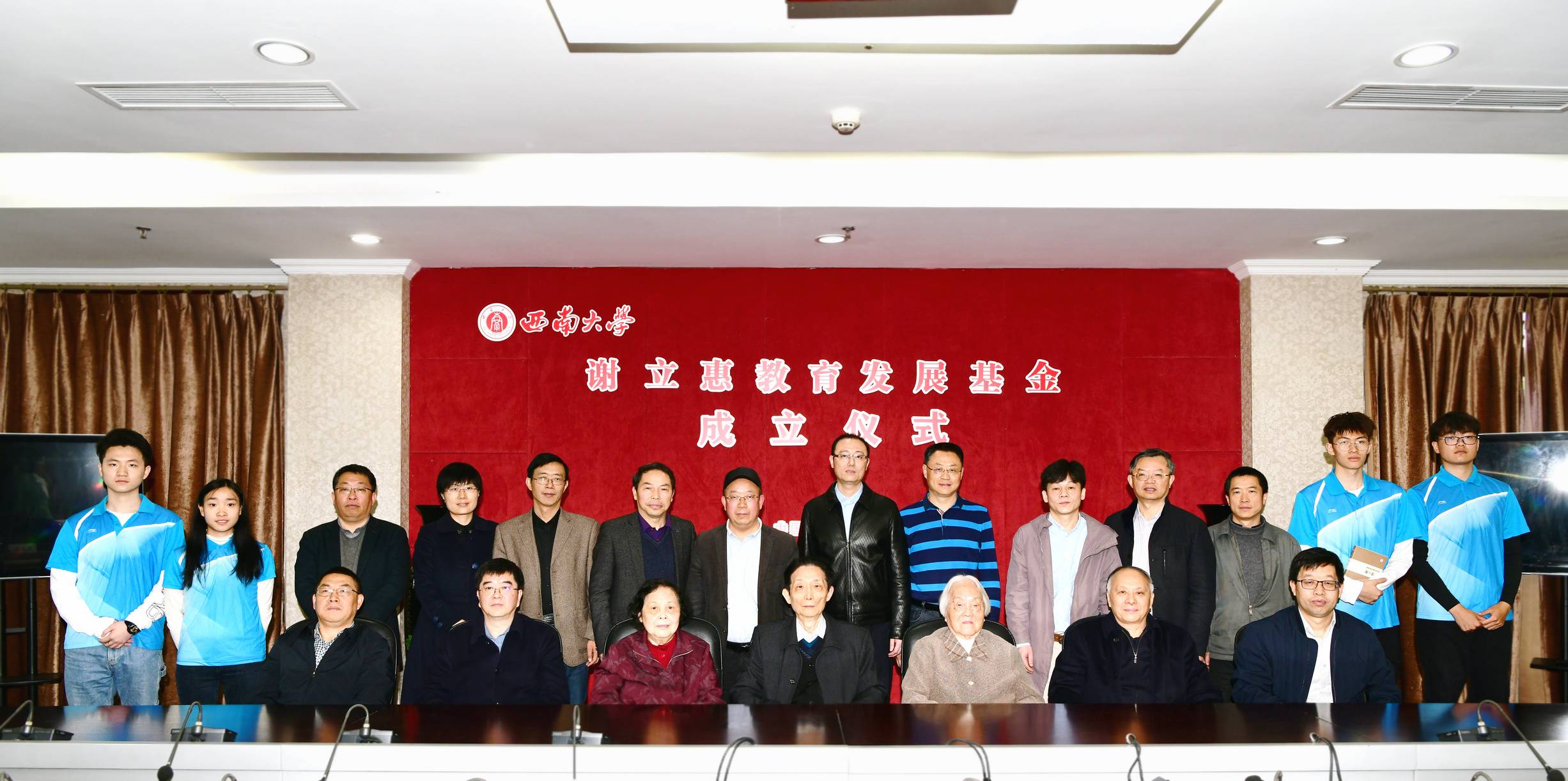 喜迎西南大学办学115周年之际,为缅怀先贤,激励后学,由学校对外联络办公室、电子信息工程学院和物理科学与技术学院共同倡导,在谢立惠先生子女的大力支持下,学校成立了“谢立惠教育发展基金”。同一时期,由学校对外联络办公室倡导,在何文俊先生妻子及其他亲属的大力支持下,学校成立了“何文俊教育发展基金”。