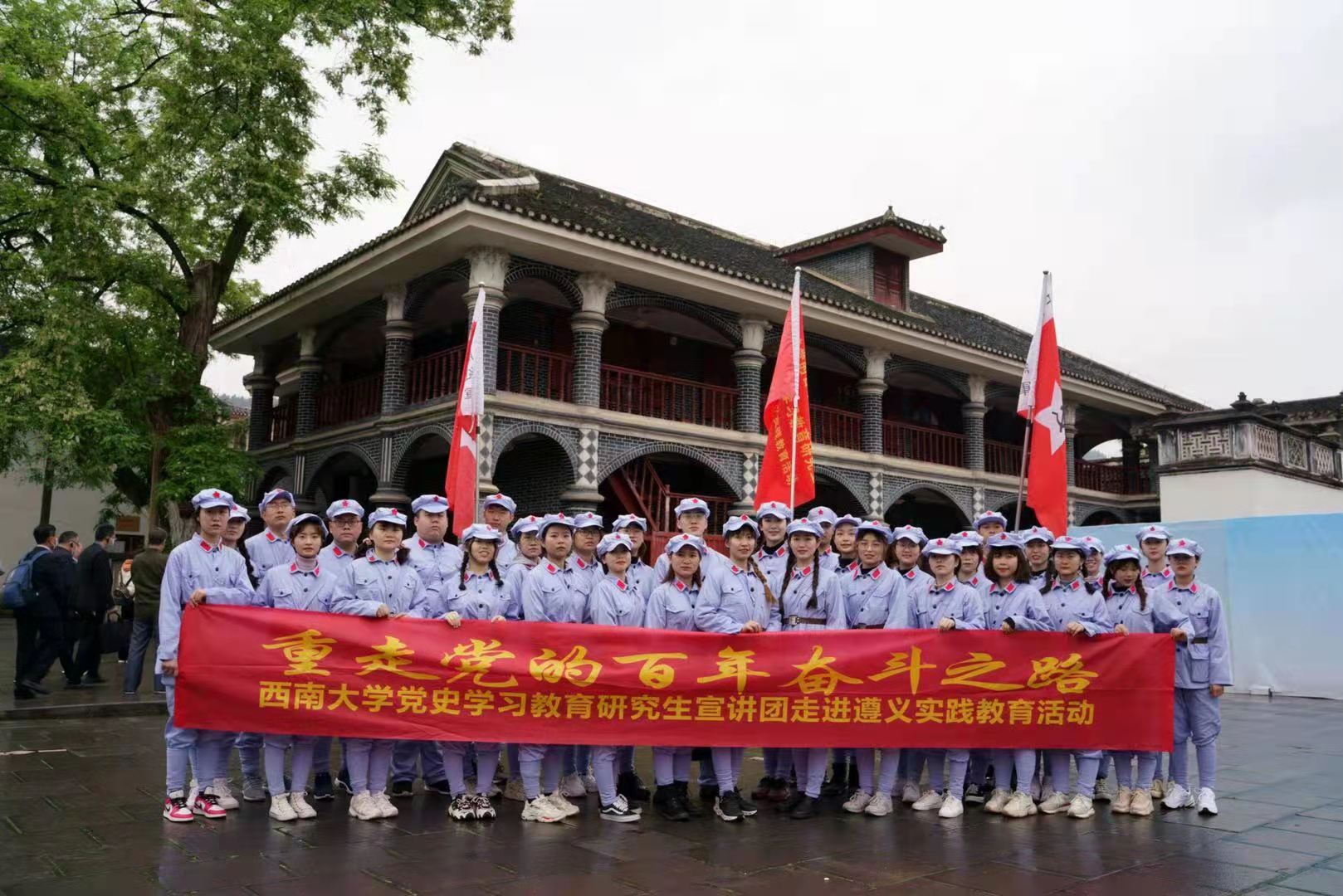4月17-18日,党委研究生工作部组织学校党史学习教育研究生宣讲团39名同学走进革命圣地遵义,开展“重走党的百年奋斗之路”实践教育,以党史宣讲、现场教学、情景表演等多种形式开展党史学习教育,受到新华社报道,目前视频浏览量已突破百万。