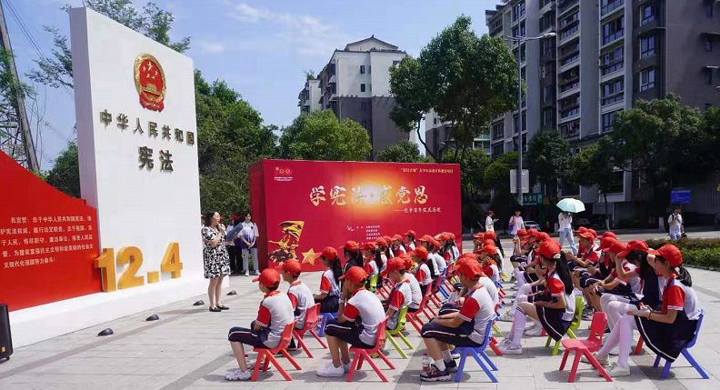 聚焦专业学党史,党章百年铸辉煌。6月4日下午,在北碚缙云法治文化公园, 学校廌鸣法律社的青年志愿者们聚焦专业所学,将党史教育与法治教育有机融合,为北碚区华光小学的同学们上了一堂别开生面的沉浸式中小学法治教育课。此次活动由北碚区司法局、团区委、普法办、西南大学法学院联合主办,是法学院党史学习教育的重要组成。
