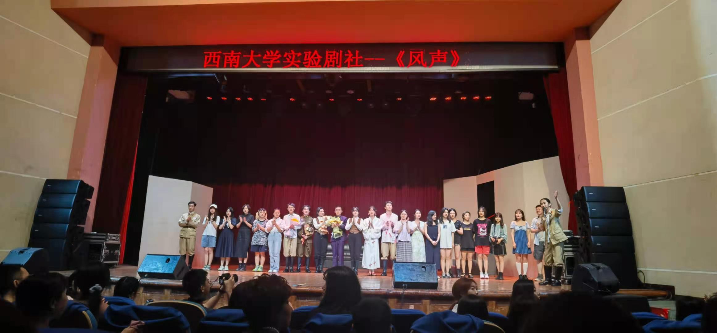 庆祝建党百年,缅怀英雄先烈。6月14日下午及晚上,西南大学实验剧社排演的话剧《风声》在光大礼堂倾情上演两场,该话剧改编自知名作家麦家的同名小说,全校2000余名师生到场观看。