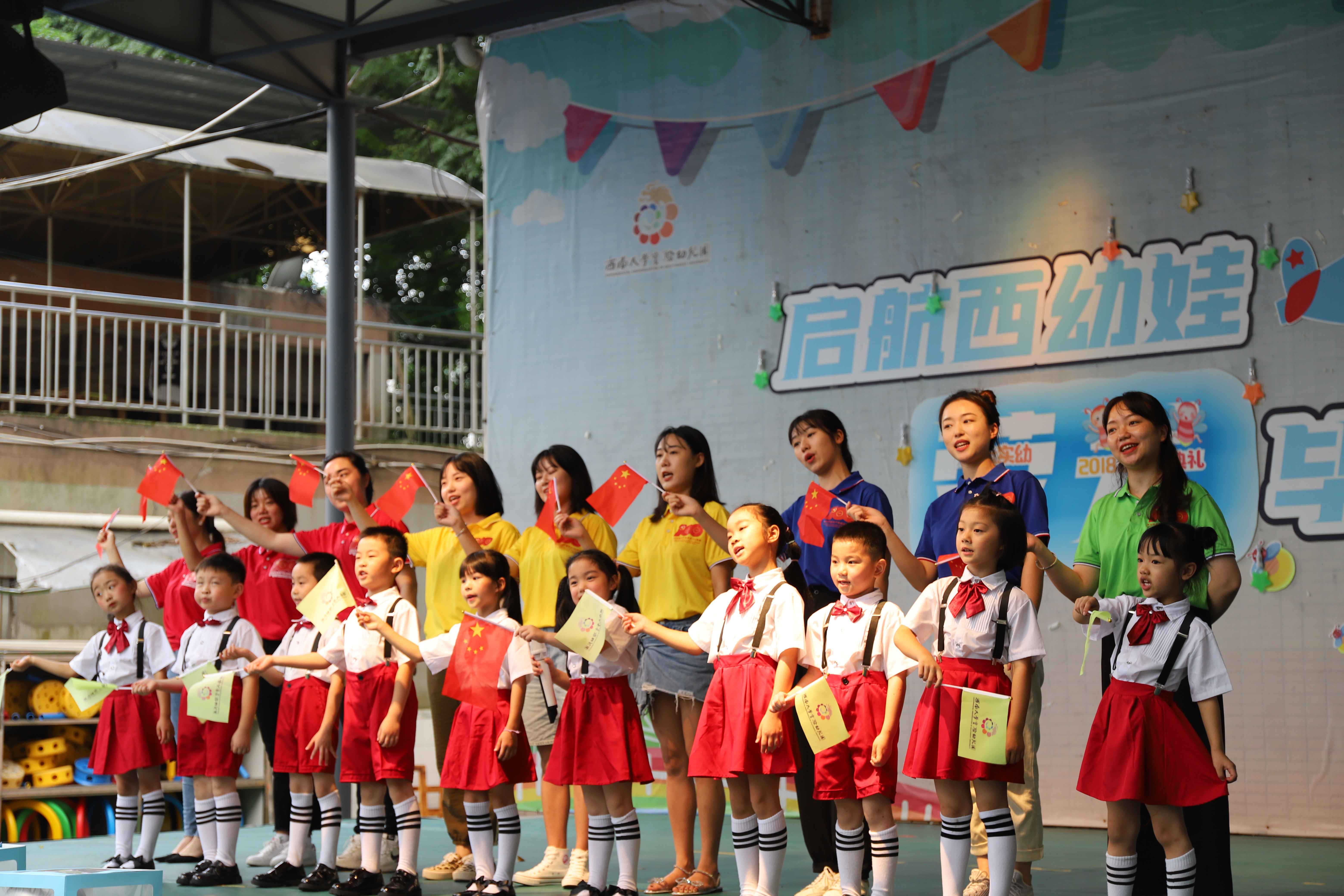 7月1日晚,实验幼儿园的大班孩子和家长们在幼儿园和老师们参与了题为“启航,西幼娃”的毕业典礼。