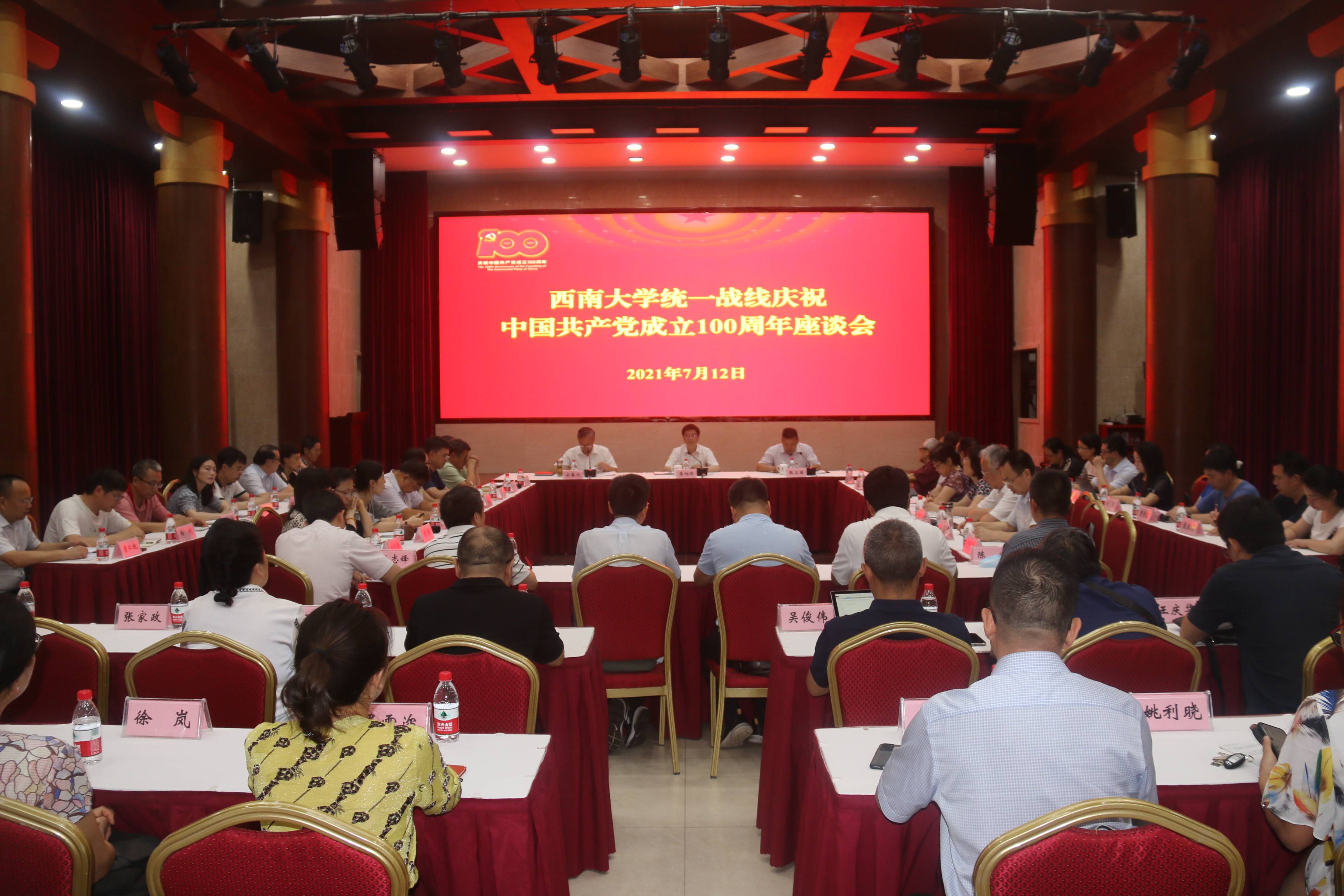 为热烈庆祝中国共产党成立100周年,深入学习贯彻习近平总书记“七一”重要讲话精神,回顾中国共产党百年奋斗历程,从百年党史中汲取继续前行的精神力量,7月12日下午,学校召开统一战线庆祝中国共产党成立100周年座谈会。学校党委书记李旭锋,校长、党委副书记张卫国出席会议,党委副书记、党委统战部部长安春元主持会议。