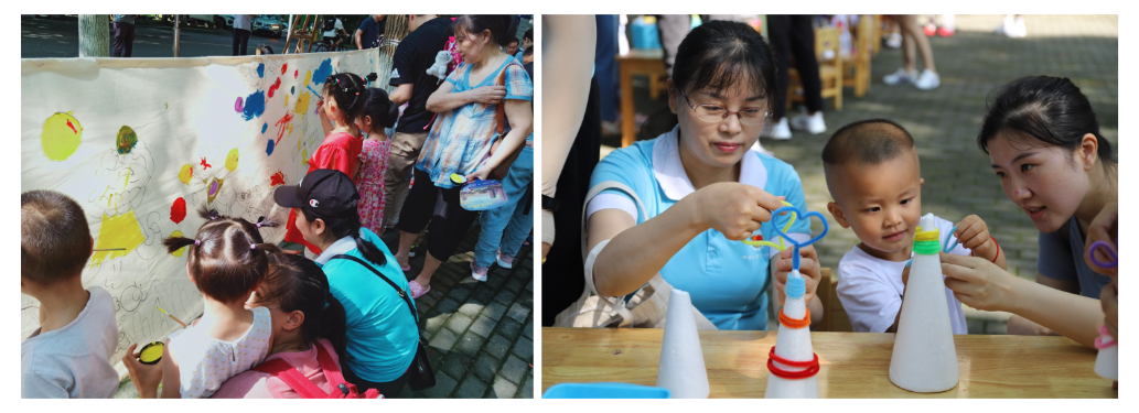 在本次活动中孩子与家长来到活动场地参加了体能、艺术、阅读等丰富多彩的互动活动,在活动中孩子们与老师亲密互动,家长也在现场教师的示范带动下了解家教指导的方式方法,并在亲切的交流中解决在家教指导中的难题。