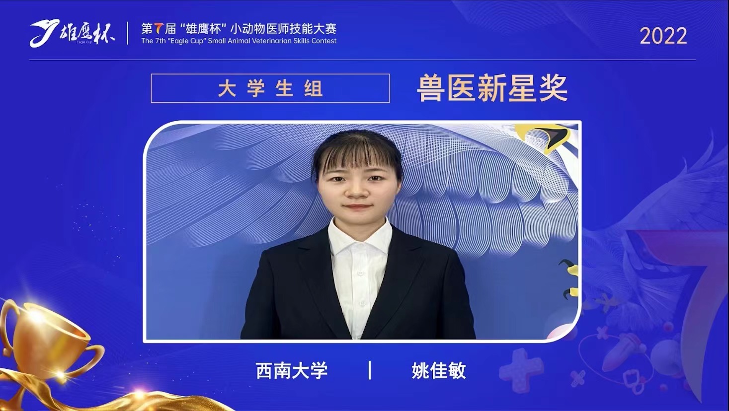 鹰击长空竞自由,逐鹿西北展雄风。学校学子在第7届“雄鹰杯”小动物医师技能大赛上取得优异成绩,再次夺得第7届“雄鹰杯”小动物医师技能大赛大学生组“团体特等奖”。学校获得“最佳组织奖”,是全国唯一连续四届斩获该赛事特等奖的高校。