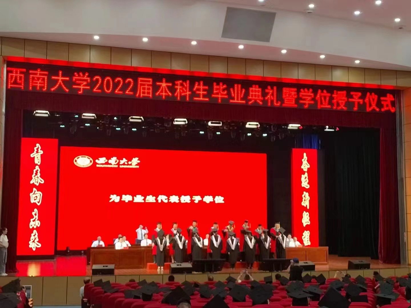 毕业典礼暨学位授予仪式在全场师生齐唱《西南大学校歌》中圆满结束。典礼通过学校官方微信公众号、官方微博等平台直播,广大师生、家长、校友和社会各界人士共计8万余人次同步见证“云端毕业盛典”。