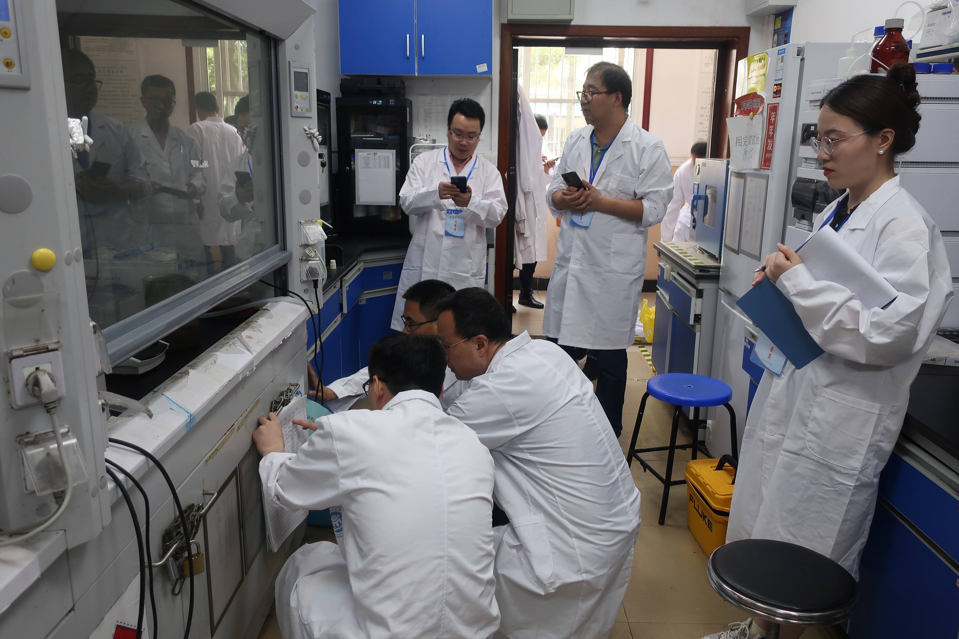 会后,检查组抽选14个自然科学类二级单位的43间实验室进行安全现场检查,同时对校本部1个化学类实验室废弃物暂存点进行了现场检查与工作指导。