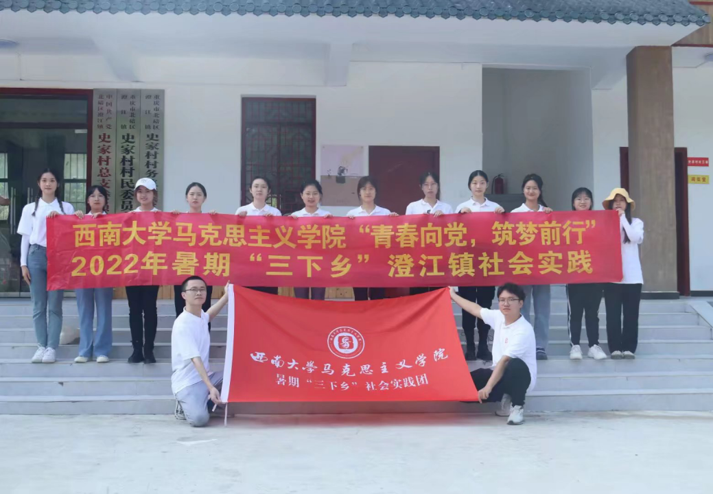 近日,马克思主义学院2022年暑期“三下乡”社会实践团前往北碚区澄江镇,开展以“青春向党,筑梦前行”为主题的社会实践活动,包括劳动实践、党史宣讲及剧目表演等形式。