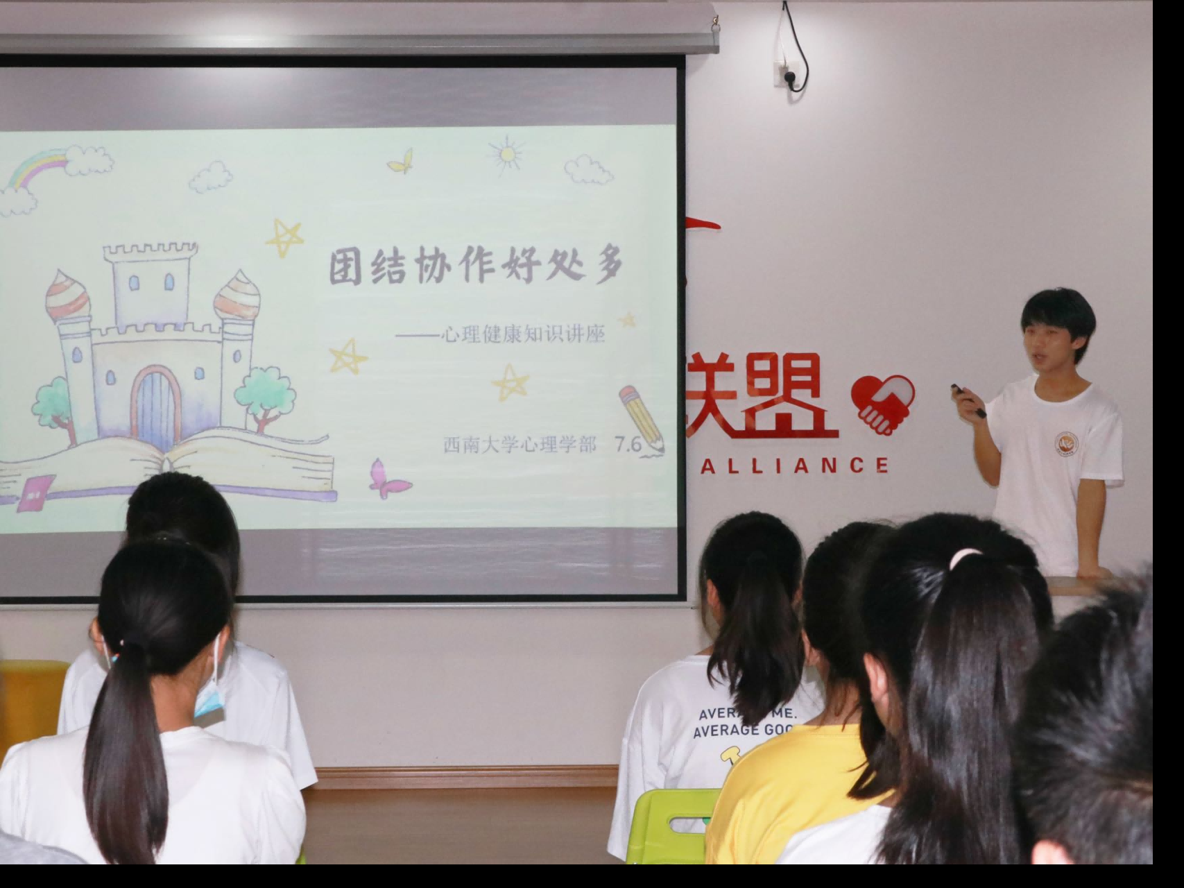实践团前往城口高观镇开展团辅活动,为小朋友讲解团队合作的相关知识,并设计丰富的游戏让小朋友在沟通、协作中学习团队协作。同时,实践团还开展学生心理健康状况调查,根据结果进行家访,针对学生和家长的困惑给出相关建议,帮助青少年了解心理常识,培养青少年的积极乐观心态。