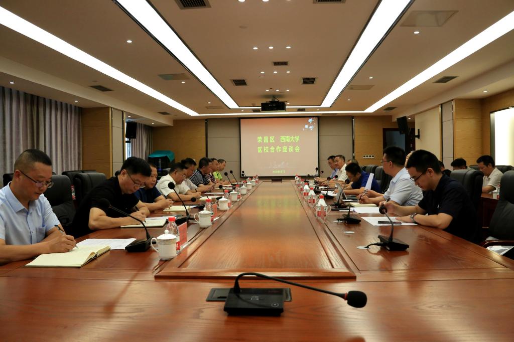 座谈会上,荣昌校区管委会主任左福元介绍了校区发展历史、人才培养条件、学科专业设置、管理体制机制、校地合作成果等方面情况;学校发展规划与学科建设部部长葛信勇介绍了荣昌校区“十四五”事业发展规划;学校后勤保障部部长李堂荣介绍了荣昌校区后勤保障与基本建设工作;学校国内合作处副处长、产业技术研究院执行院长田维波介绍了学校筹备第十届中国畜牧科技论坛工作进展。重庆市畜牧科学院、荣昌(国家)生猪大数据中心等单位参会同志先后发言。