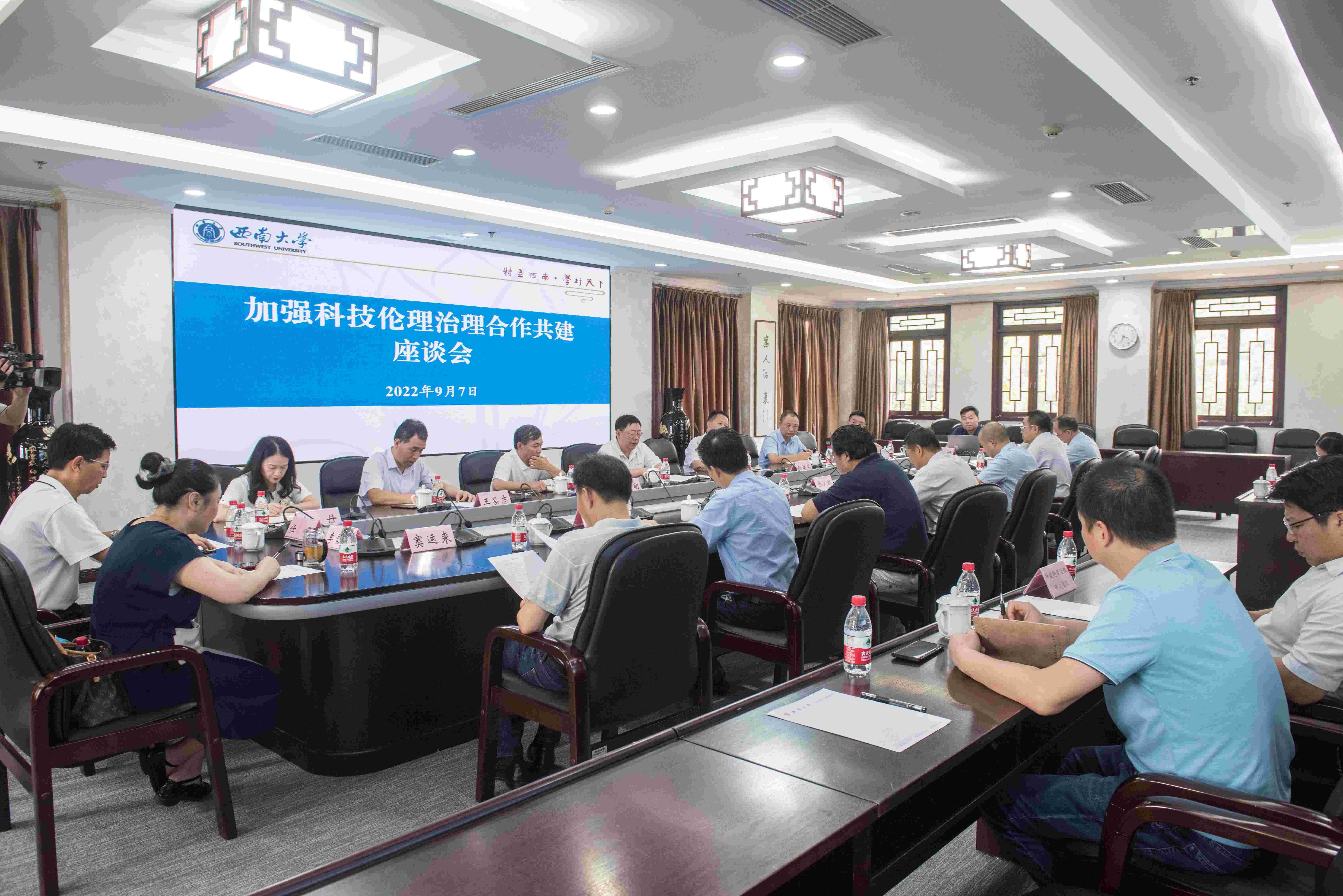 在加强科技伦理治理合作共建座谈会上,张卫国对王合清一行来校调研指导工作表示衷心感谢,同时从四个方面就学校抓好科技伦理工作作介绍:一是充分认识到高水平科技伦理对高质量科技事业发展的重要性;二是认真贯彻学习落实《关于加强科技伦理治理的意见》;三是整合学校资源,组建成立西南大学科技伦理治理研究中心,筹建重庆市科技伦理学学会;四是加强科技伦理治理的努力方向。