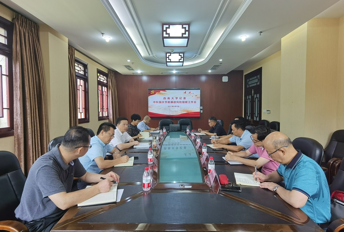 为持续巩固中央八项规定精神成果,营造风清气正的节日氛围,9月7日下午,学校纪委组织召开中秋国庆节前廉政风险提醒工作会。学校党委副书记、纪委书记夏玉峰出席会议,党政办公室、党委组织部、纪委办监察处巡察办、校工会、财务部、审计处、资产经营有限公司直属党支部、后勤集团等单位负责人参加会议。