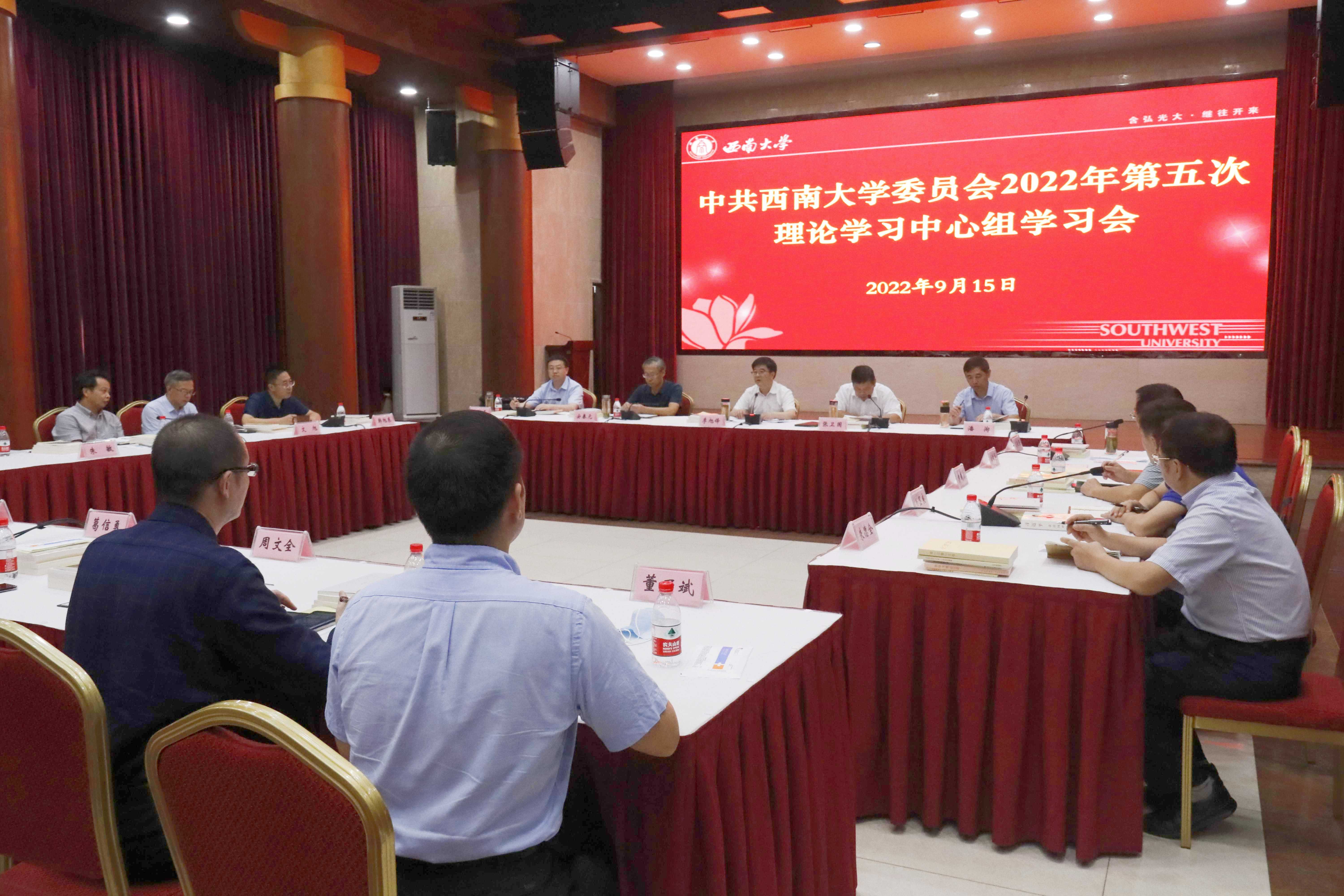 9月15日,学校在东方红会议厅召开2022年第五次党委理论学习中心组学习会。会上,学习了习近平总书记在省部级主要领导干部“学习习近平总书记重要讲话精神,迎接党的二十大”专题研讨班上的重要讲话精神、《习近平谈治国理政》第四卷、习近平生态文明思想、习近平总书记关于“三农”工作的重要论述。学校领导、党委常委、党委委员参会,学校党委书记李旭锋主持会议。