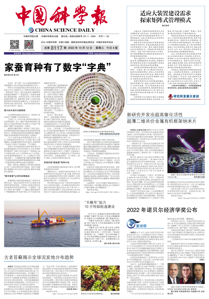 10月12日,《中国科学报》头版头条以《家蚕育种有了数字“字典”》为题报道了学校专家绘就世界首张家蚕超级泛基因组图谱并率先创建“数字家蚕”基因库。据悉,这是国家级报纸首次在头版头条报道西南大学重大科技成果新闻。报道原文如下。