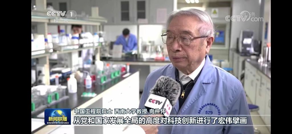 向仲怀院士接受央视记者采访,他谈到:习近平总书记在党的二十大报告中强调要加快实现高水平科技自立自强,以国家战略需求为导向,集聚力量进行原创性引领性科技攻关,坚决打赢关键核心技术攻坚战。习近平总书记掌舵领航,从党和国家发展全局的高度对科技创新进行了宏伟擘画。国家有力量,我们有信心,我们将全力以赴,捍卫蚕桑领域在全球的引领地位,把蚕桑种质资源研究主动权牢牢掌控在自己手中,全力推进高水平科技自立自强,奋力在新征程上,展现新作为。