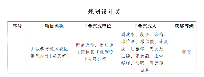 近日,中国风景园林学会公布2022年度科学技术奖评选结果,学校园艺园林学院教授周建华牵头主持的城市更新设计项目荣获2022年度中国风景园林学会科学技术奖(规划设计奖)一等奖,这也是学校和重庆市首次获此奖项。