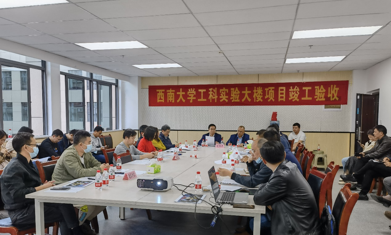10月31日下午,由建设、地勘、设计、监理和施工单位组成的验收组在北碚区住宅与城乡建设委员会的监督下,进行了工科实验大楼项目的竣工验收。学校副校长韩旭东率校园规划建设委员会成员单位和使用单位相关负责人参与验收。