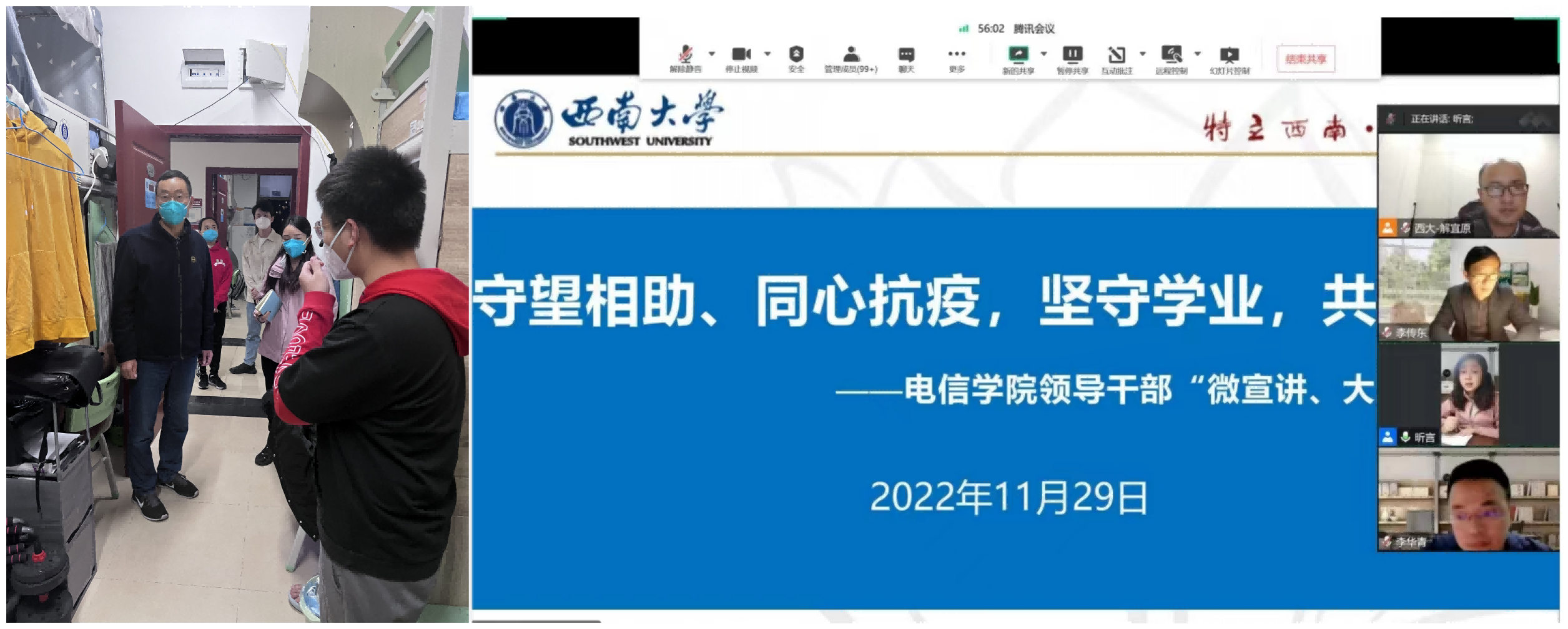 为深入学习贯彻党的二十大精神,严格落实学校疫情防控工作部署,保障同学们学习生活需求,充分发挥高校育人工作实效,电子信息工程学院近期以“守望相助、同心抗疫,专注学业、共克时艰”为主题,开展线上线下“微宣讲、大走访”活动。
