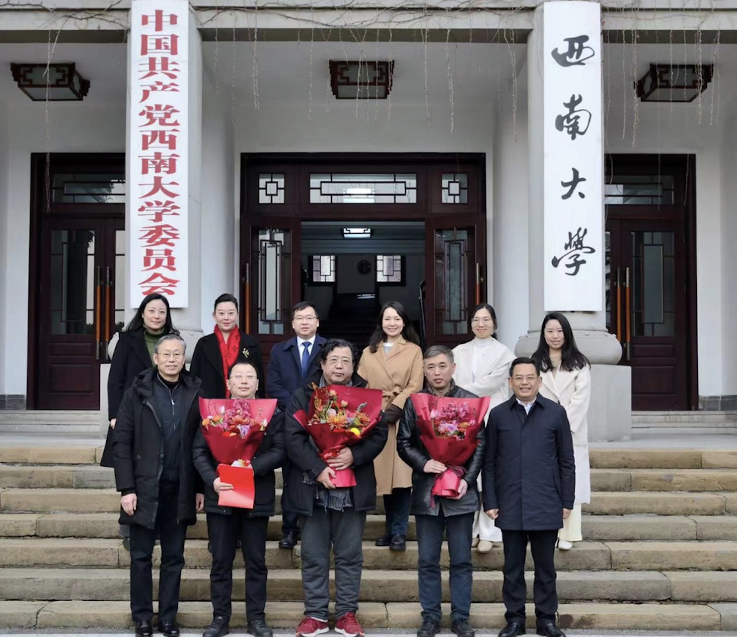 1月19日下午,重庆市人力资源和社会保障局党组书记、局长黎勇一行来校亲切慰问重庆英才计划优秀科学家代表潘洵教授、崔延强教授、朱德全教授。学校党委副书记安春元,党委组织部副部长、人才工作办公室主任卓颖,党委教师工作部部长、人力资源部副部长李燕陪同座谈交流。