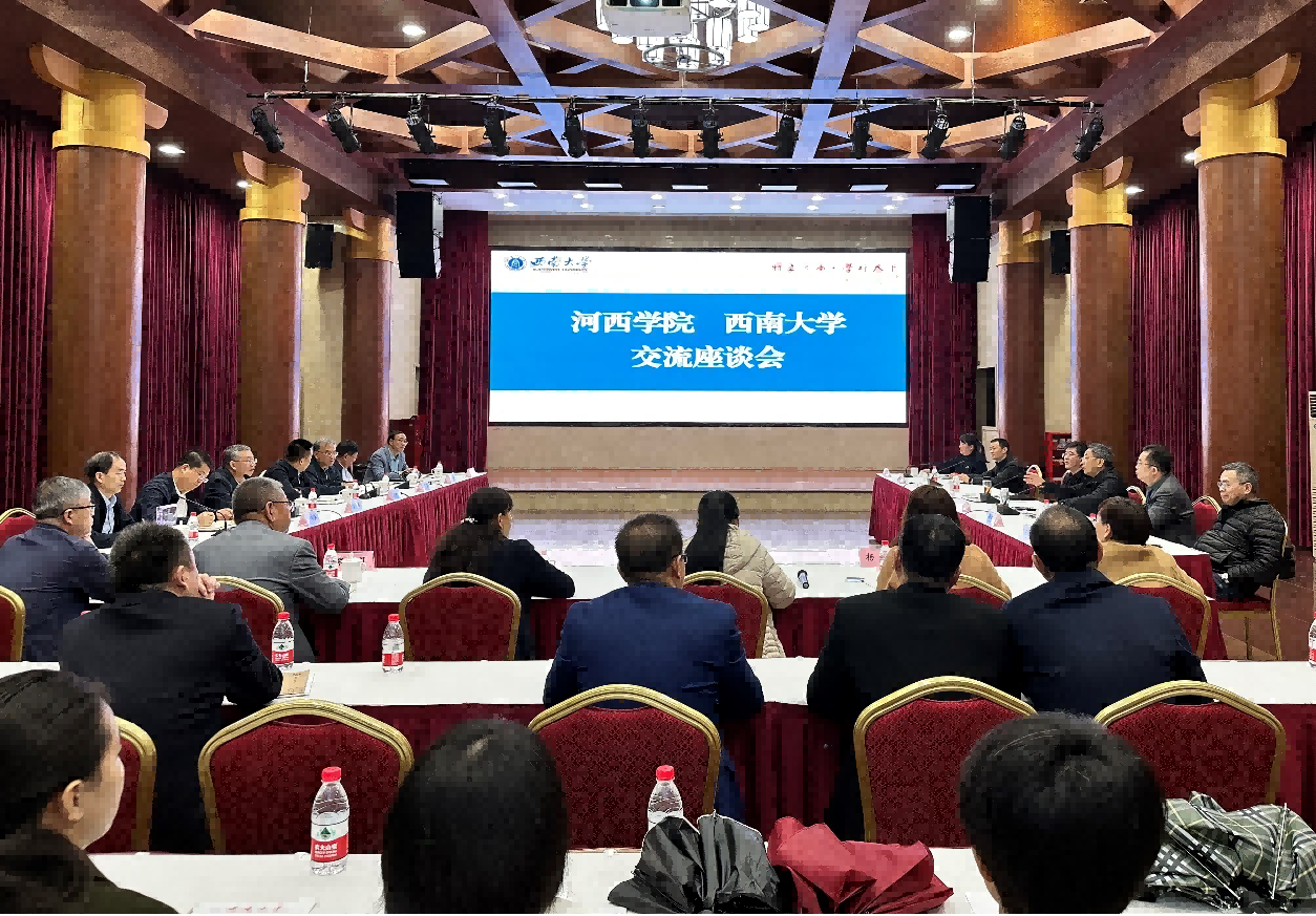 会上,梁兆光介绍了河西学院历史沿革、学科专业、师资队伍、人才培养、科学研究等方面的情况,感谢西南大学作为提质计划组团牵头高校对河西学院的大力支持和帮助。他表示,师范教育协同提质计划的实施为河西学院提供了难得的发展机遇。希望以推进协同提质计划为契机,推动两校开展全方位、常态化的联系交流,以更灵活的方式在更高层次、更宽领域深化校际合作,为河西学院实现高质量发展增添新动能新优势。